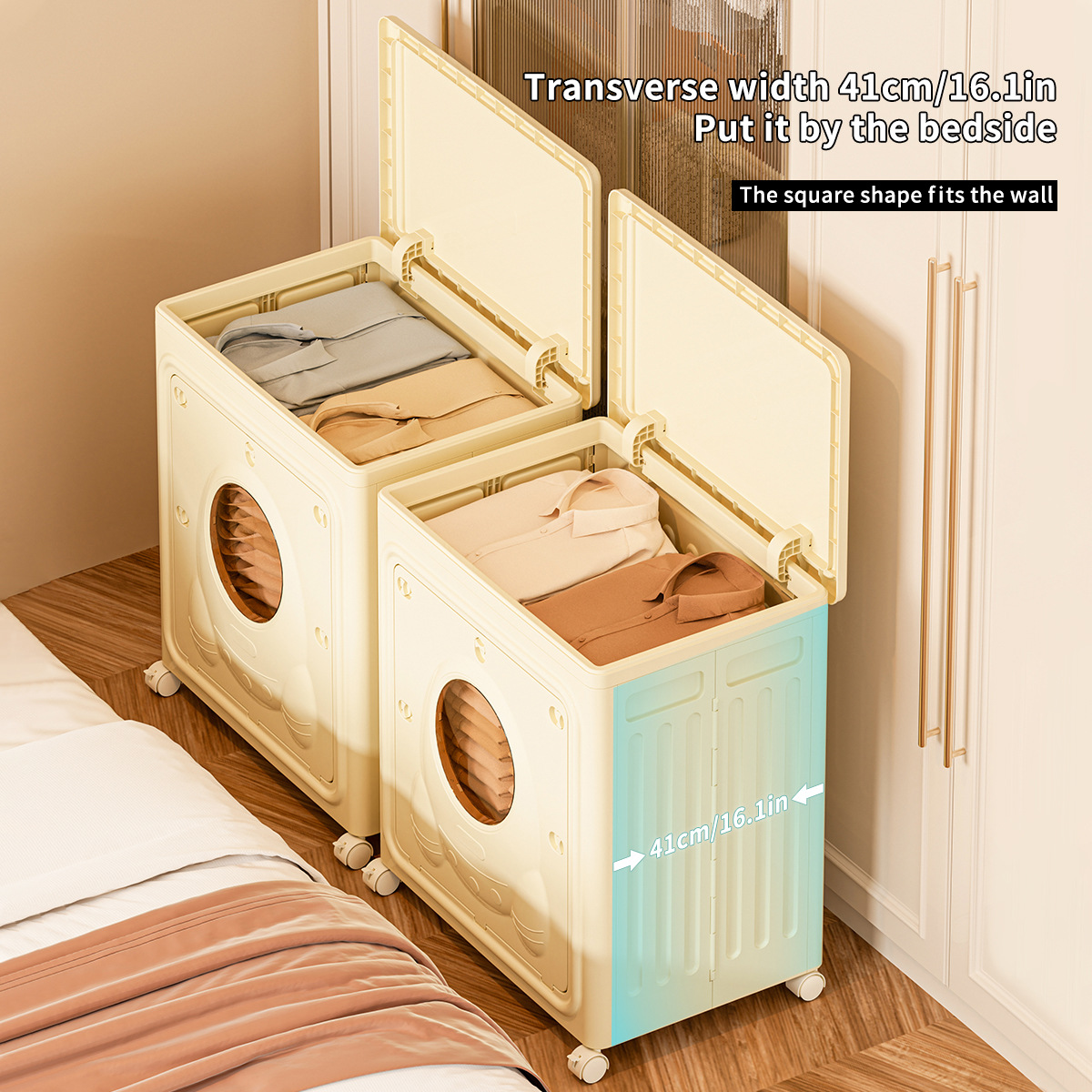 Главная страница > Крупный вместительный ящик для хранения одежды и игрушек, вмещающий большие куклы, с колесами и складной конструкцией