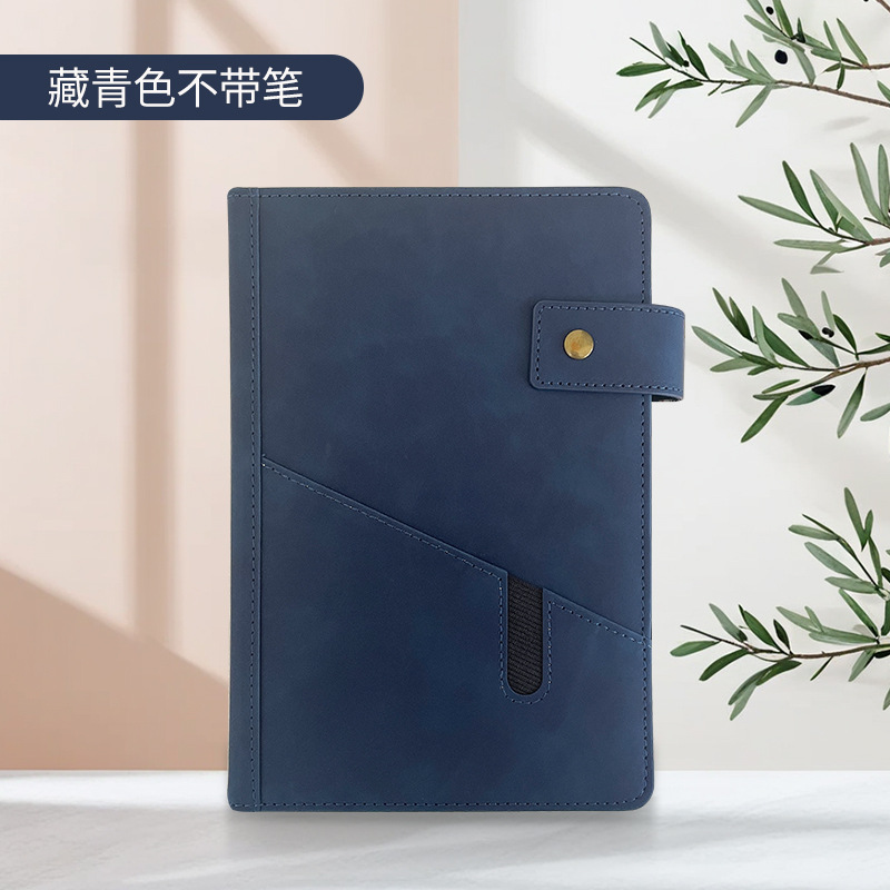 Сшитый блокнот с кнопкой A5 темно-синего цвета (блокнот + ручка)