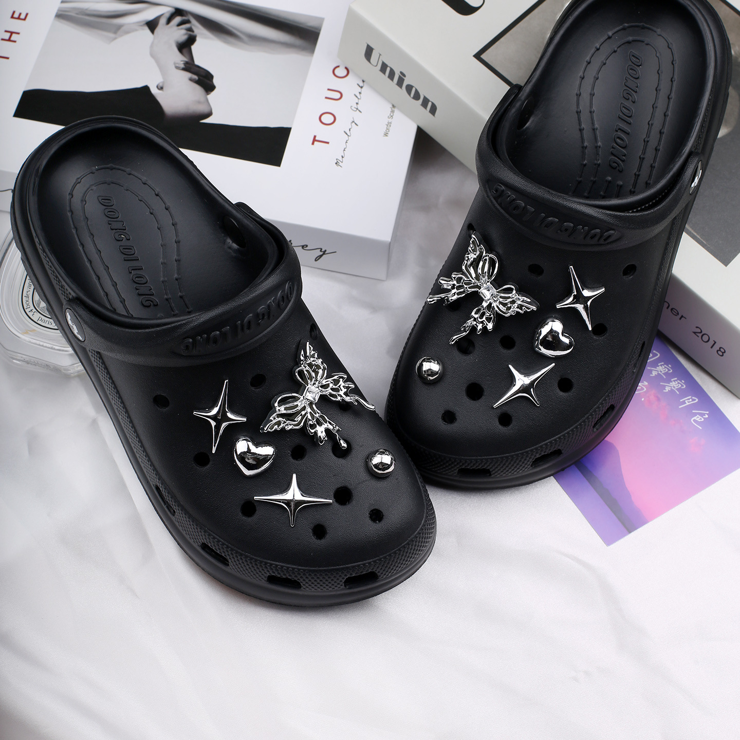 Серебряные аксессуары для обуви с бантом, пряжка для обуви, темный цветок для обуви, украшение, съемные креативные аксессуары «сделай сам»