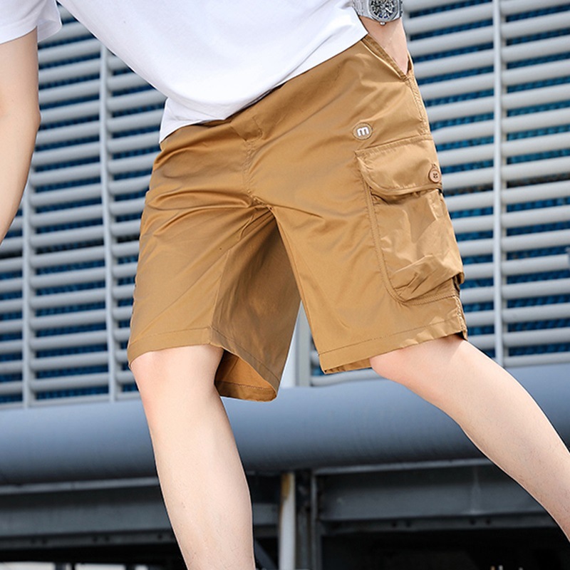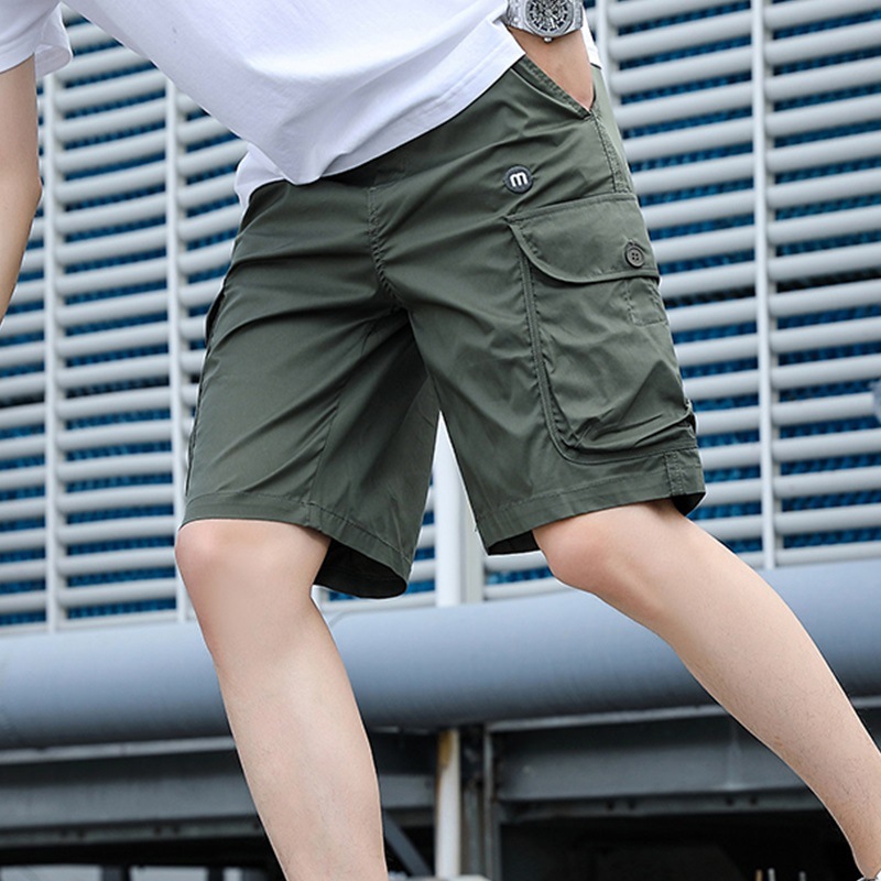 Главная страница > Мужские летние тонкие быстросохнущие шорты-карго из ледяного шелка, повседневные модные свободные спортивные шорты средней длины
