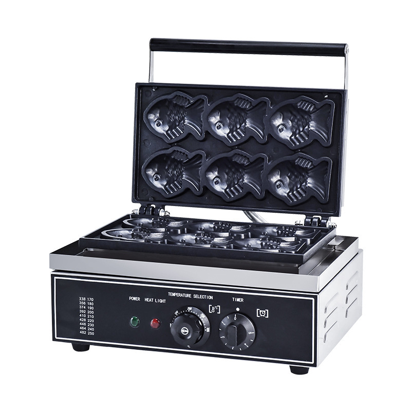 Главная страница > Машина Taiyaki с шестью маленькими рыбными котлетами, коммерческая электрическая вафельница Taiyaki с открытым верхом, стандарт США 110 В для коммерческих ларей.