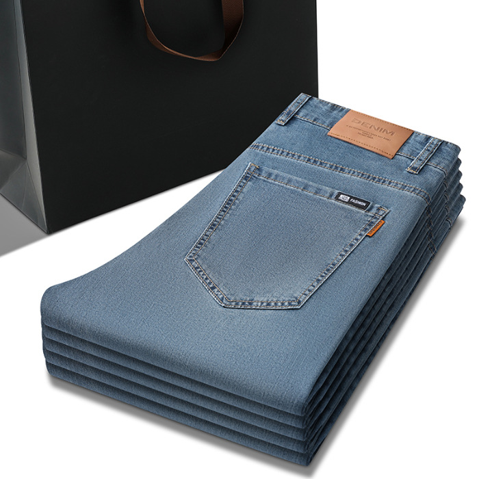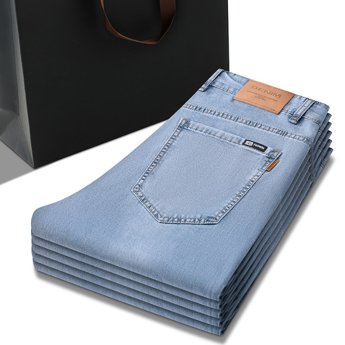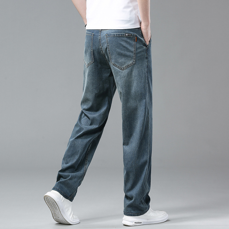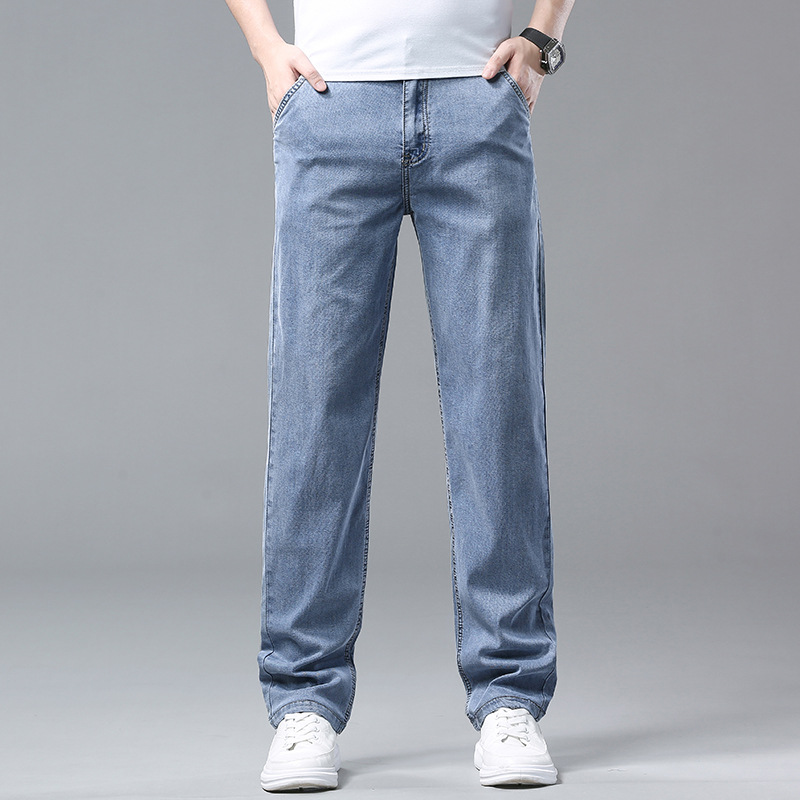 Главная страница > Летние тонкие джинсы из ледяного шелка, мужские новые свободные прямые широкие брюки, универсальные деловые повседневные брюки, мужские брюки из тенселя