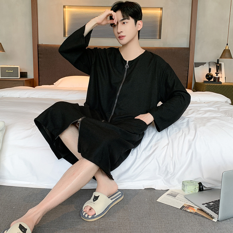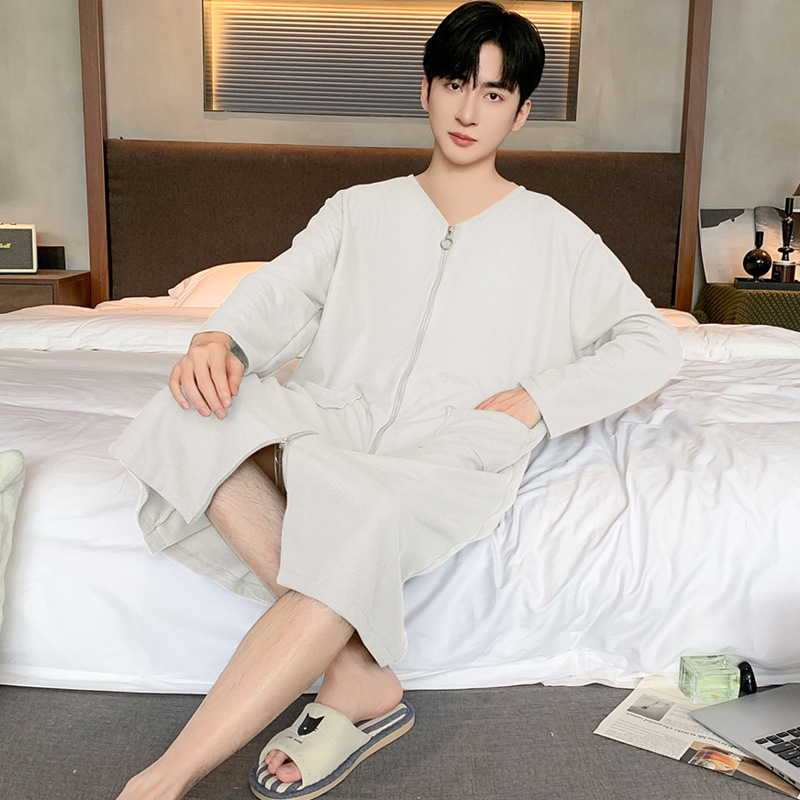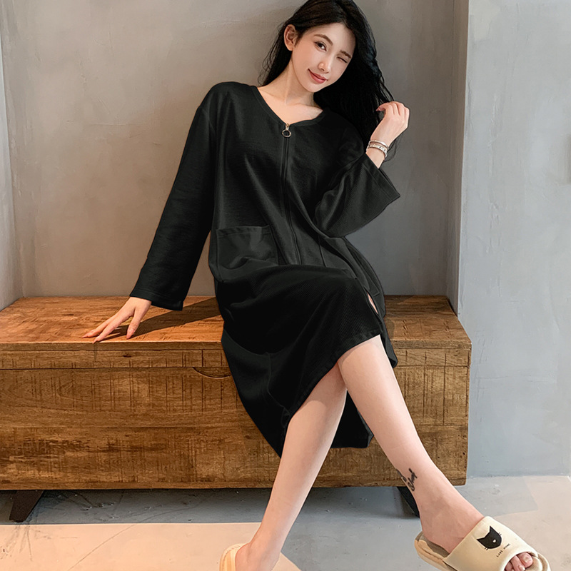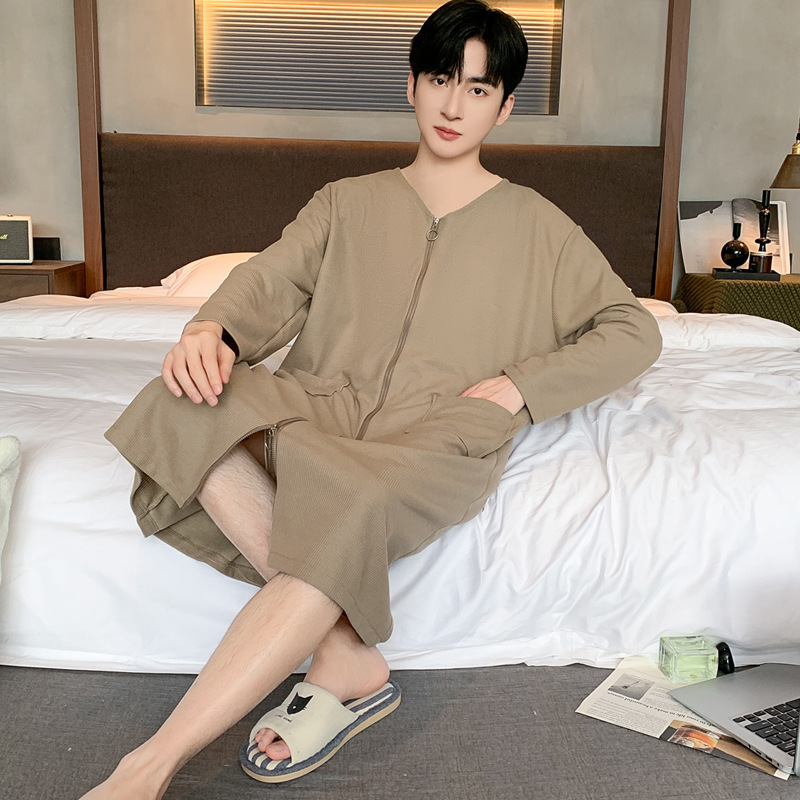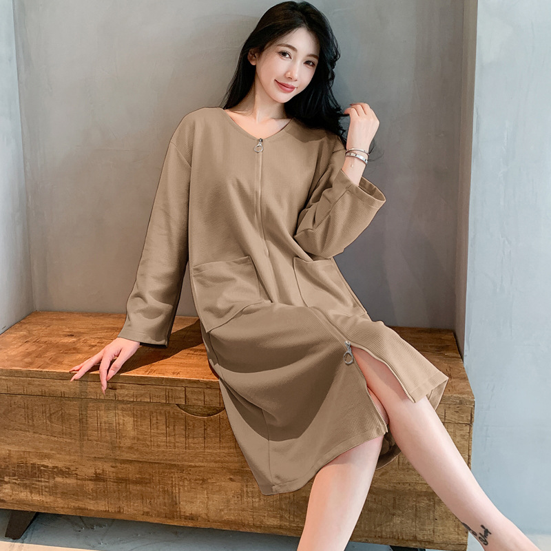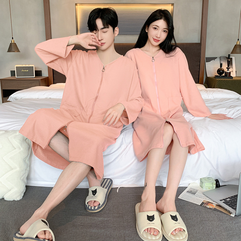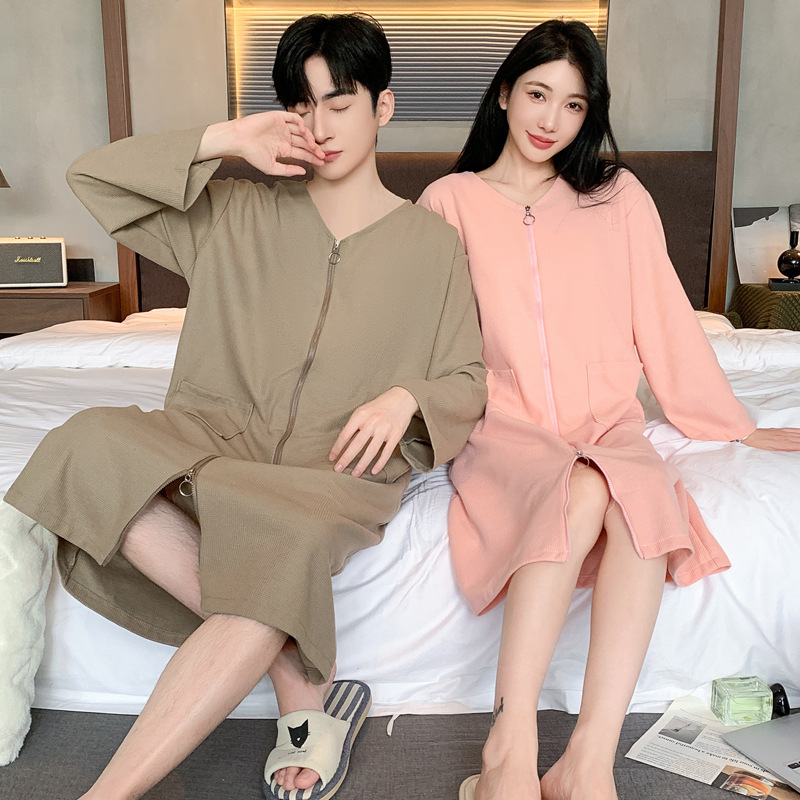 Главная страница > 2025 пара одеваются женские весенние и осенние модели минималистичные вафельные рукава с длинными рукавами среднего и длинного рукава ночное платье на молнии