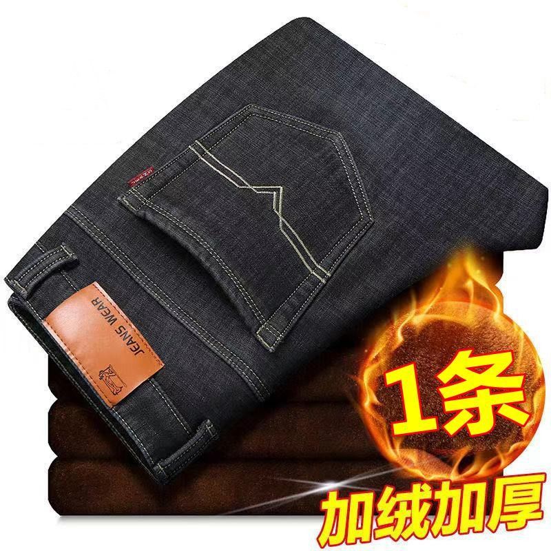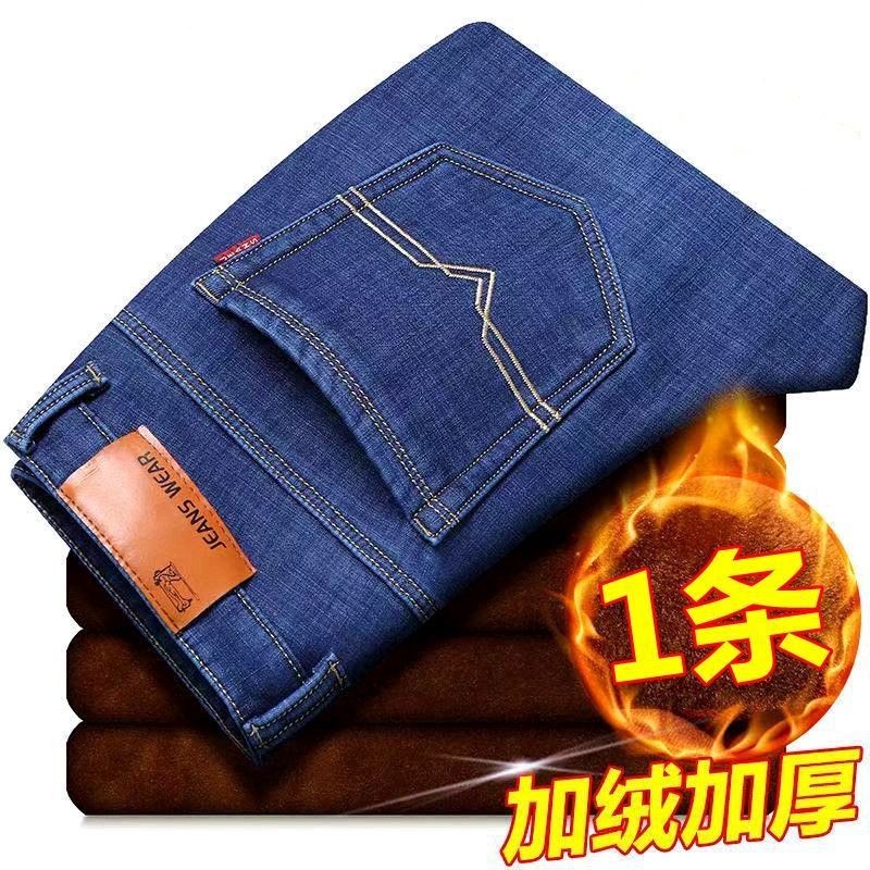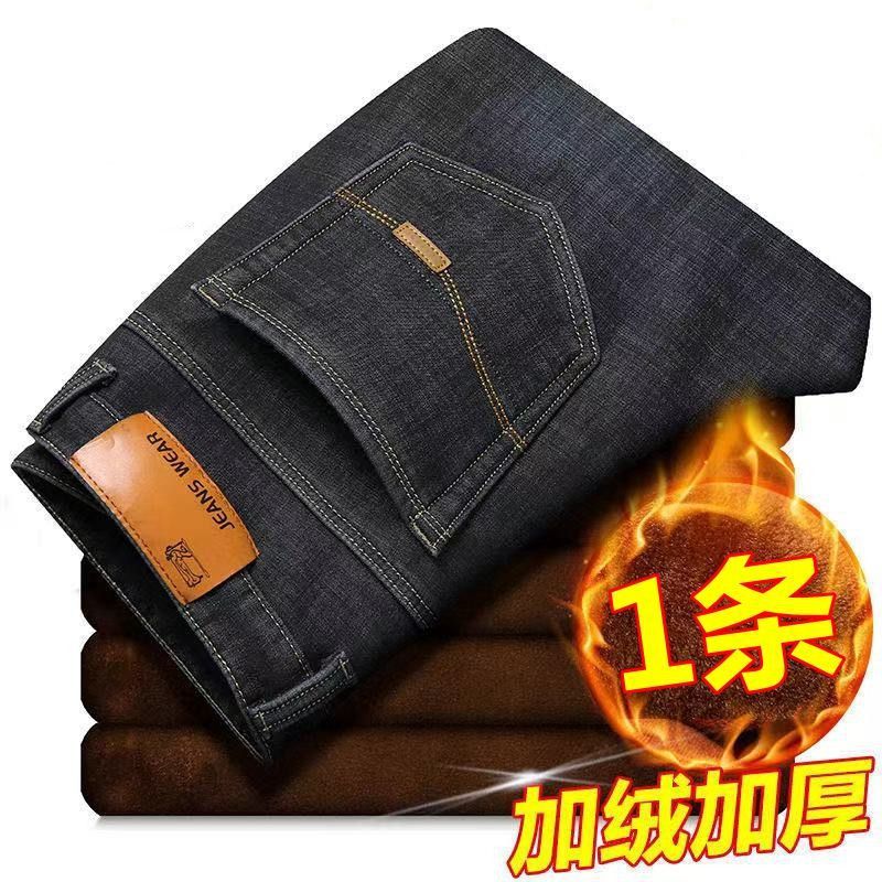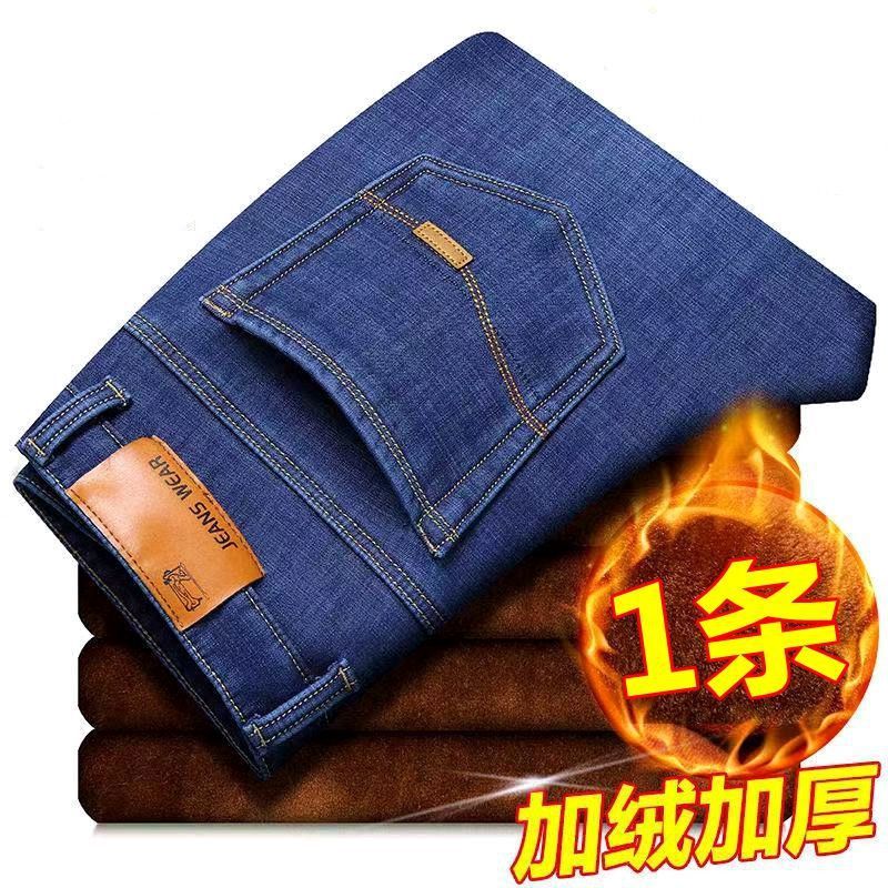 Главная страница > Утепленные джинсы на флисе, мужские зимние деловые брюки с высокой талией, свободного прямого кроя, с высокой эластичностью, для мужчин среднего возраста