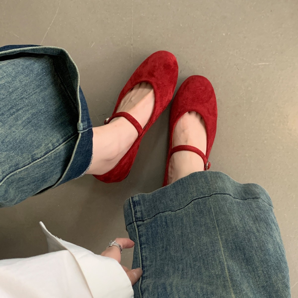 Главная страница > Маленькие красные туфли на плоской подошве в стиле ретро, новинка 2025, весенние балетки с юбкой, туфли Мэри Джейн