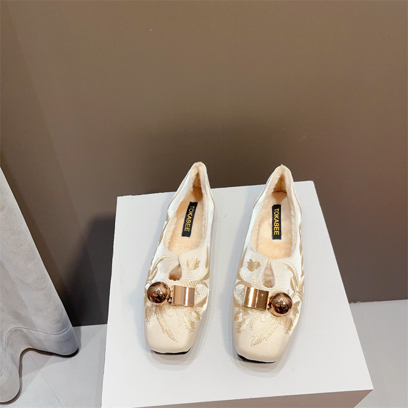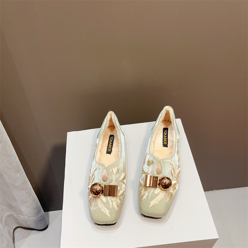 Французская ретро вышивка квадратная голова плюс бархат теплые одиночные туфли женские корейские осенние и зимние новые меховые туфли на мягкой подошве бобовые ботинки