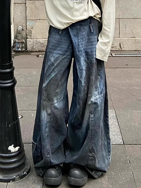 Главная страница > Американский нишевой дизайн переворачивает талию головы ретро полировочный цвет oversize джинсы, мужчины ятаган широкие брюки