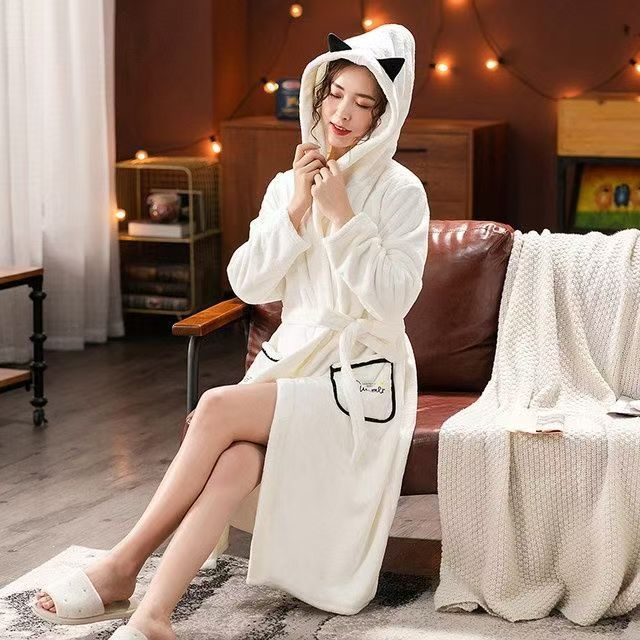 Главная страница > Новый длинный халат для купания, очень большой и толстый, из кораллового флиса, домашняя ночная рубашка с капюшоном, подходит для взрослых, удобный и теплый.