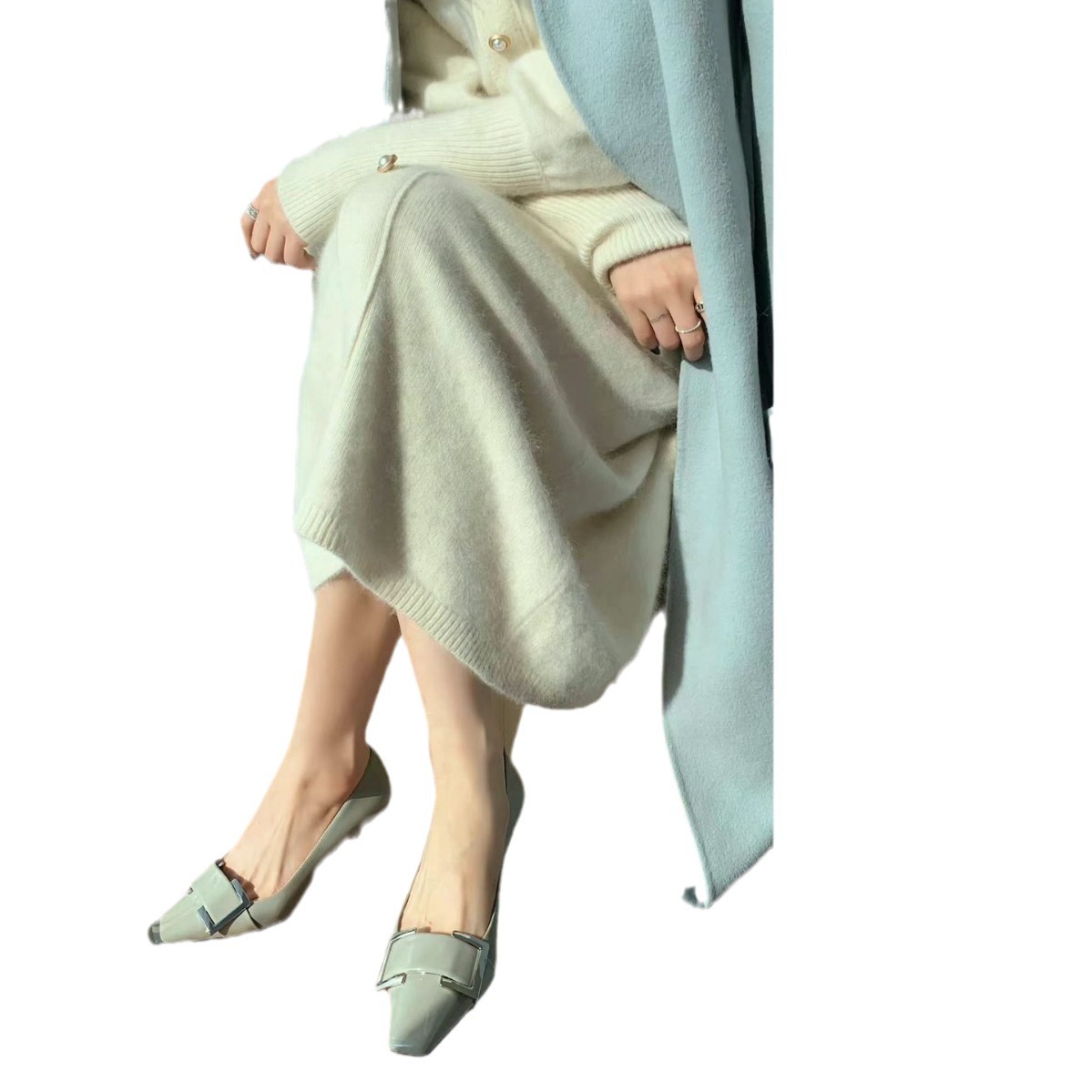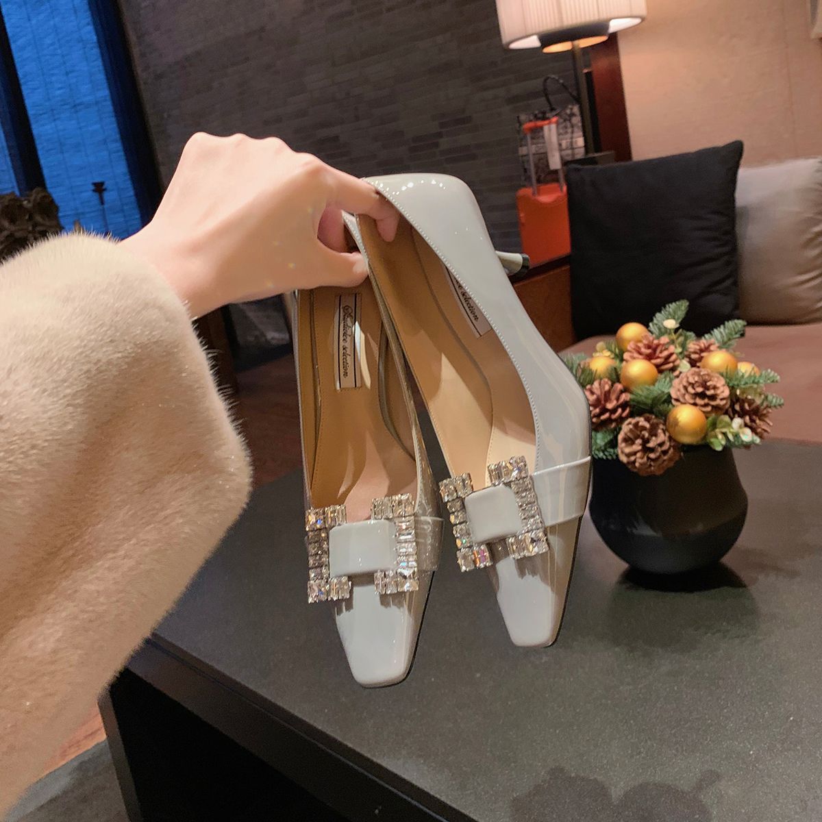 Пятно ~ Виноградная мама та же 2024 новая флеш-страз квадратная пряжка с неглубоким заострением плоского дна туфли на высоком каблуке женская осень-зима