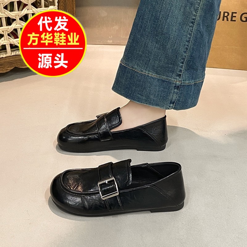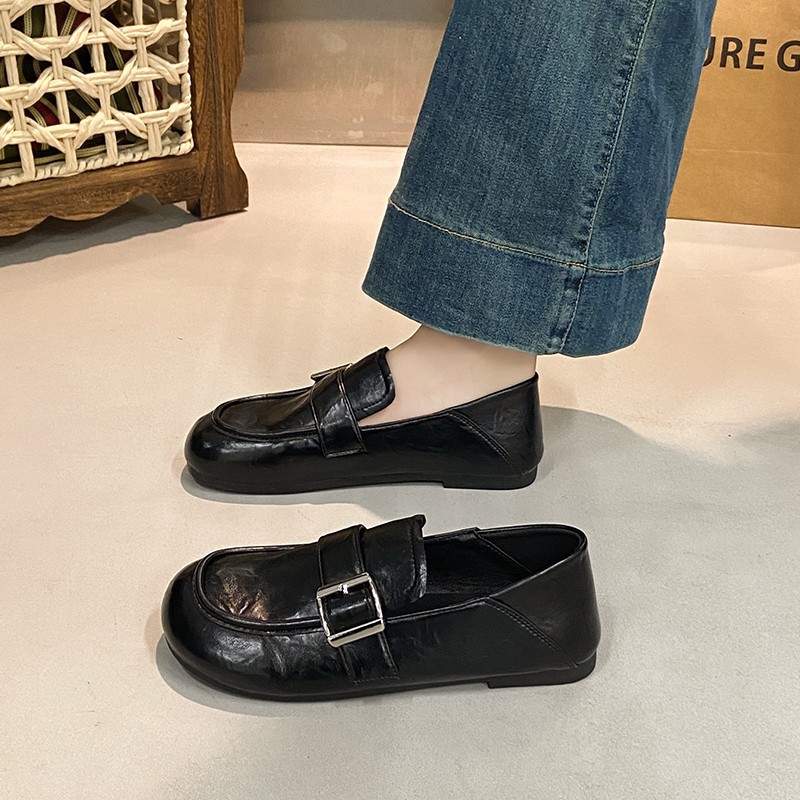 Главная страница > Женские мокасины с пряжкой на ремешке, весна-лето 2025, новые плоские кожаные туфли, ретро-туфли-бини, два варианта ношения