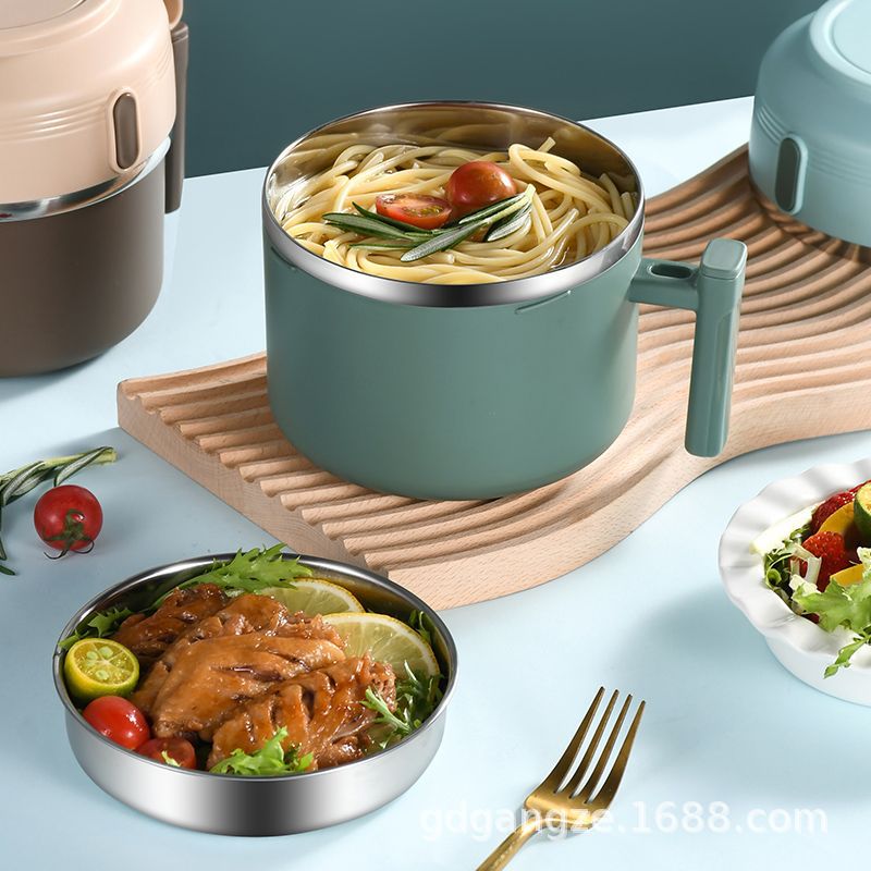 Главная страница > Новый продукт 304 Чашка фаст-фуда из нержавеющей стали с крышкой для офисных работников Студенческая столовая портативная Ланч-бокс двухслойная миска для лапши многослойная