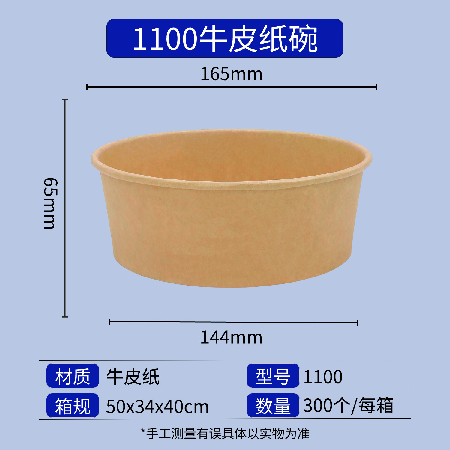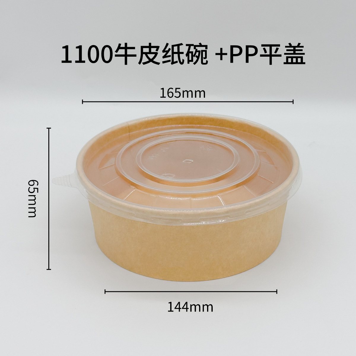 Миска из крафт-бумаги 1100 + плоская крышка из полипропилена, 300 комплектов/коробка