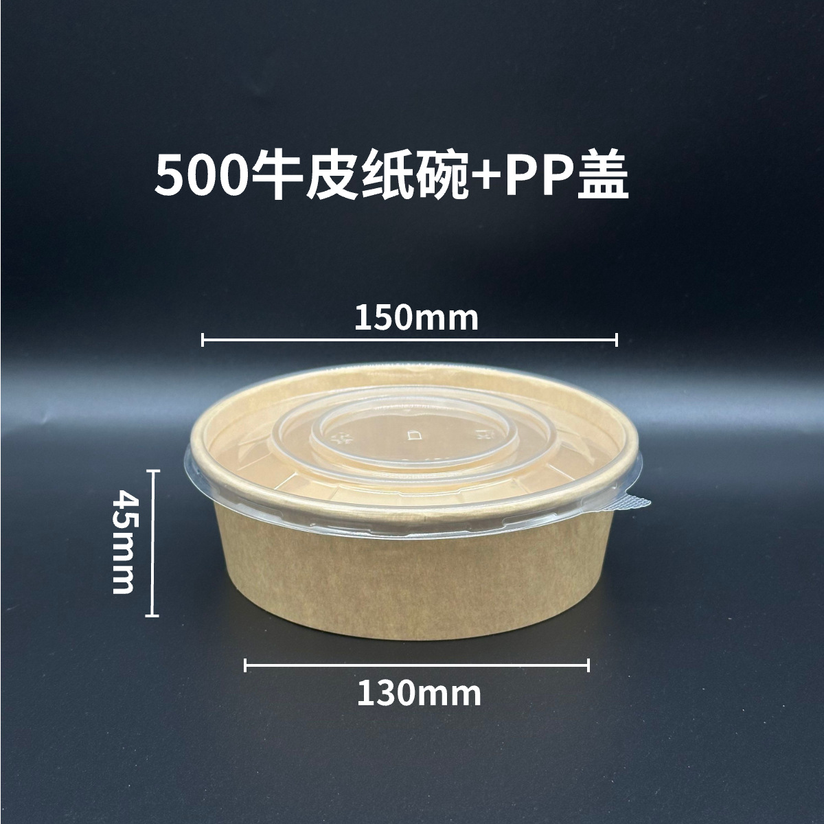 500 мисок из крафт-бумаги + прозрачная крышка с защитой от запотевания OPS, 300 комплектов/коробка
