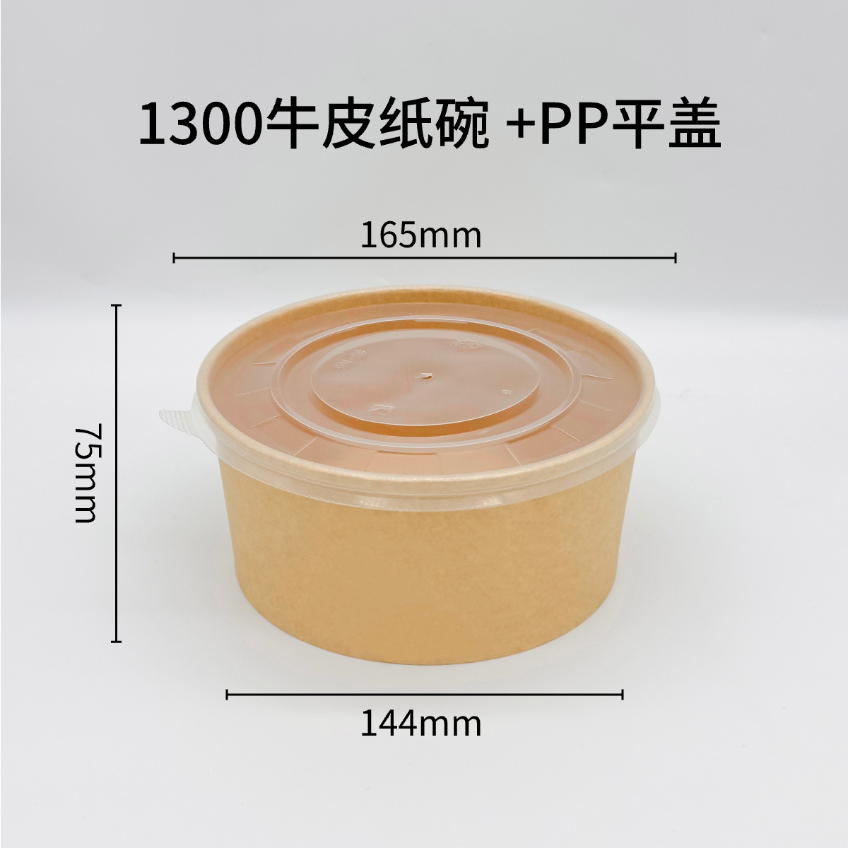 Миска из крафт-бумаги 1300 + плоская крышка из полипропилена 300 комплектов/коробка