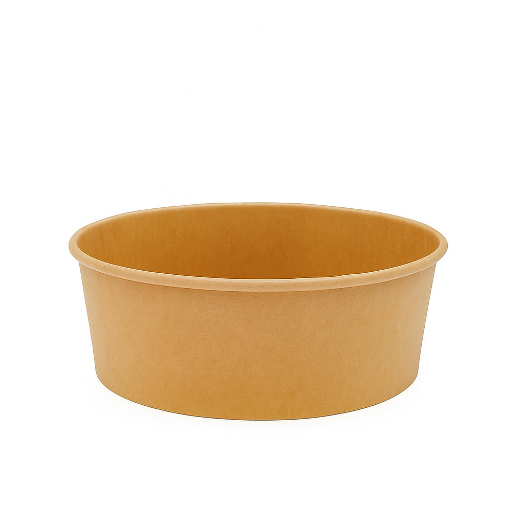 Миска из крафт-бумаги на 1000 шт. + плоская крышка из полипропилена, 300 комплектов в коробке.