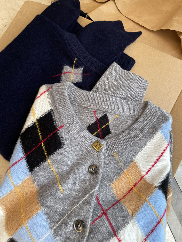 Шкаф 3K!!! ER * DO * S ретро стиль школы ромбов ~ Чистая шерсть с круглым вырезом с длинными рукавами трикотажный кардиган свитер женский