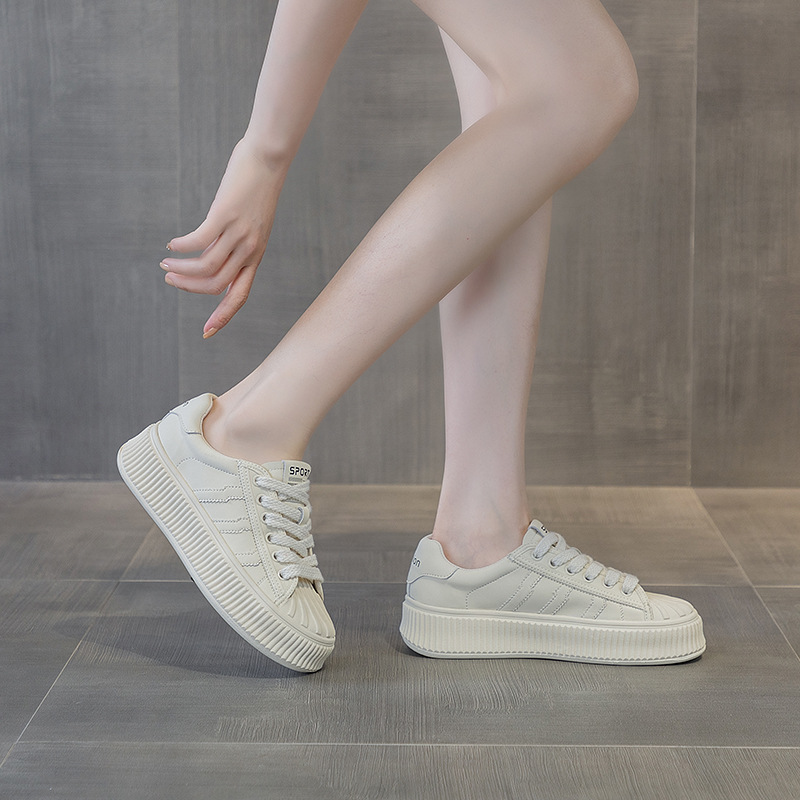 Главная страница > Белые женские туфли с ракушечным носком, натуральная кожа, печенье на толстой подошве, новинка 2024, четырехсезонная женская обувь, универсальные кроссовки для спорта и отдыха