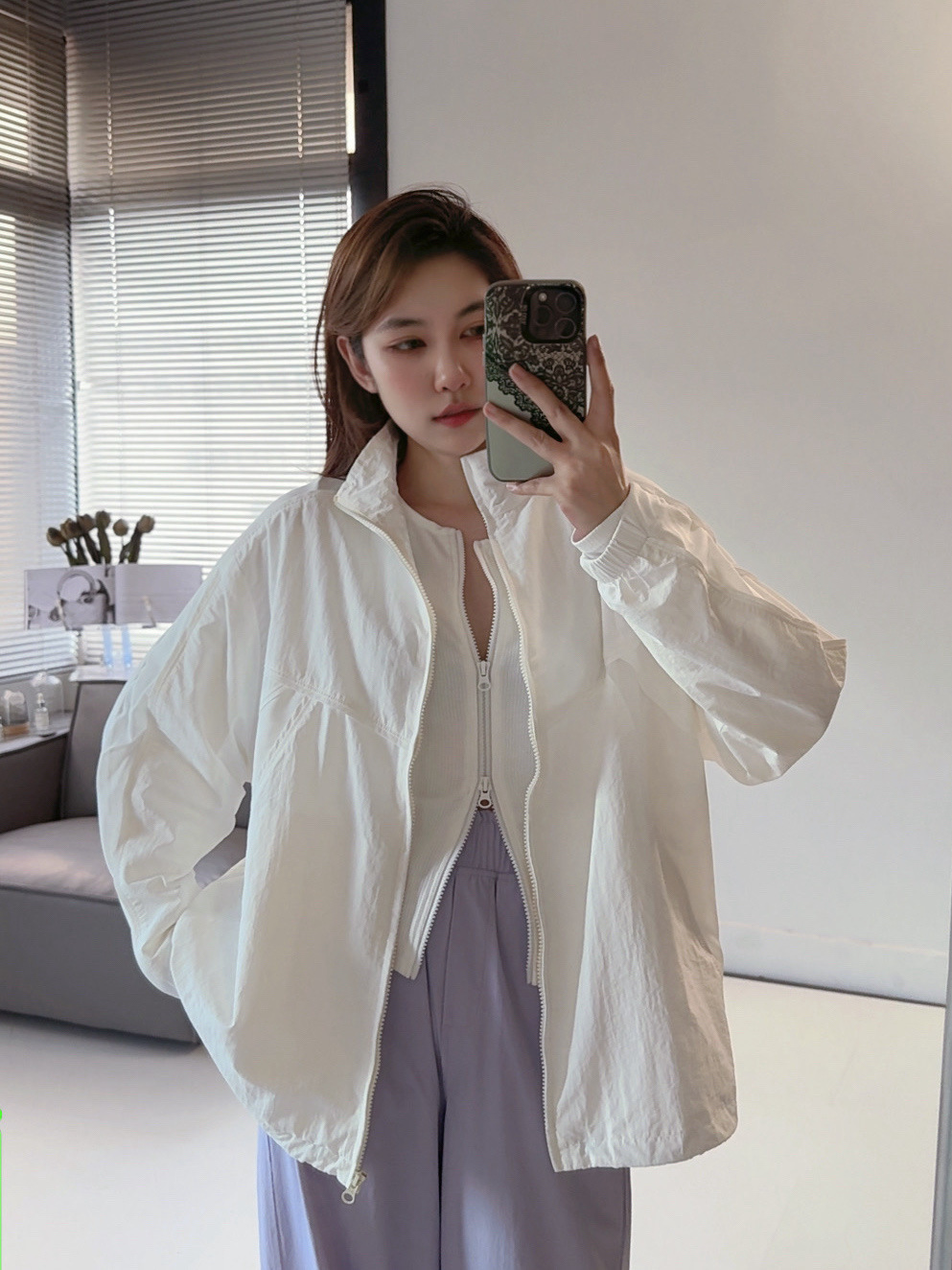 Главная страница > Женская куртка-бомбер из сетчатой ткани с прозрачными вставками, на шнуровке и молнии, новинка ранней осени, модель 25.