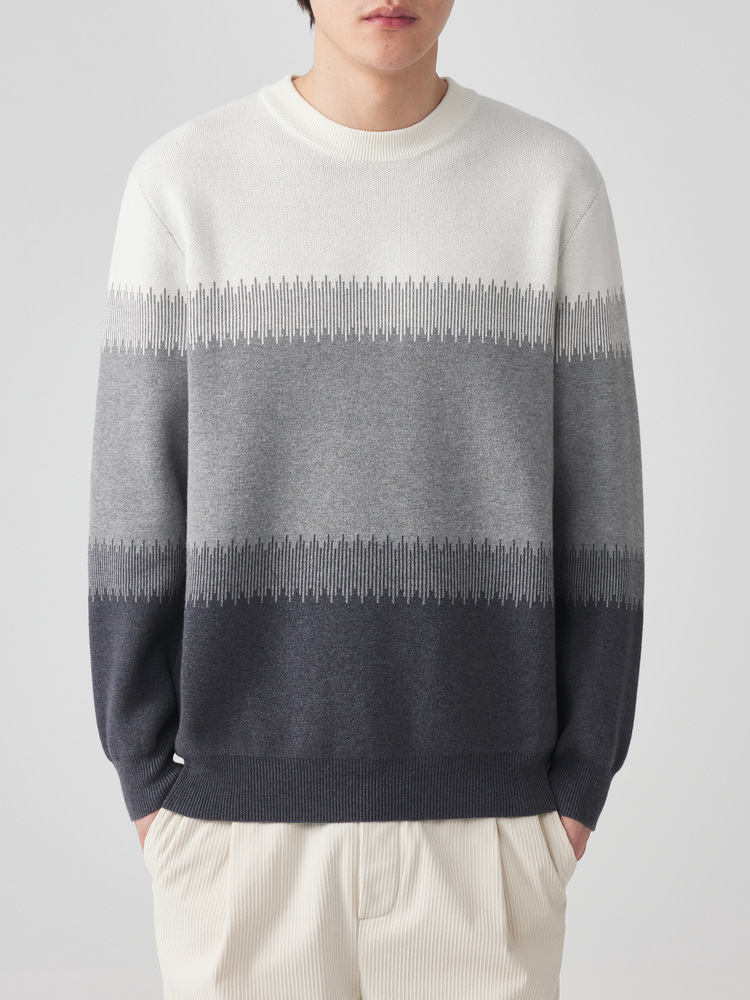 Главная страница > Мужской свитер Momeike с цветными блоками и круглым вырезом, коллекция Зима 2025, жаккард с узором «чесночные точки», мужской трикотаж 20510.