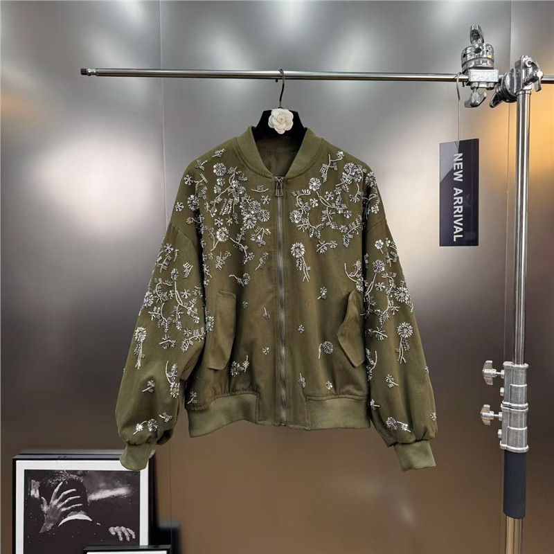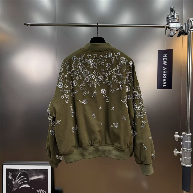 Главная страница > 秋季欧美风亮片刺绣夹克上衣外套宽松重手工钉珠休闲棒球服女秋冬