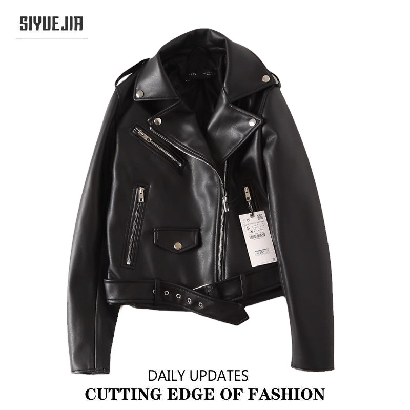 Главная страница > Черное пиджак из кожи PUPU Женская весна 2024 Новый большой размер толстый мм молния на погонах мотоциклетная кожаная куртка топ