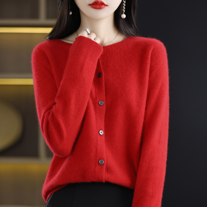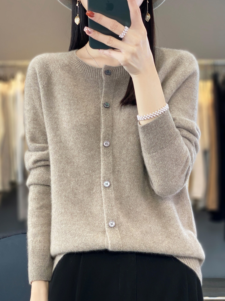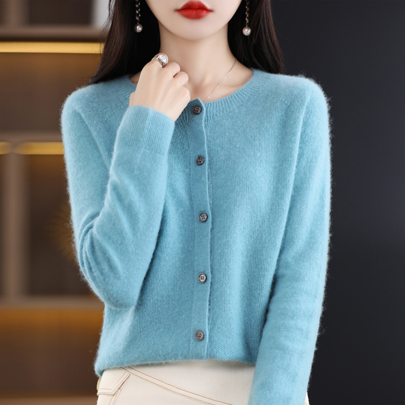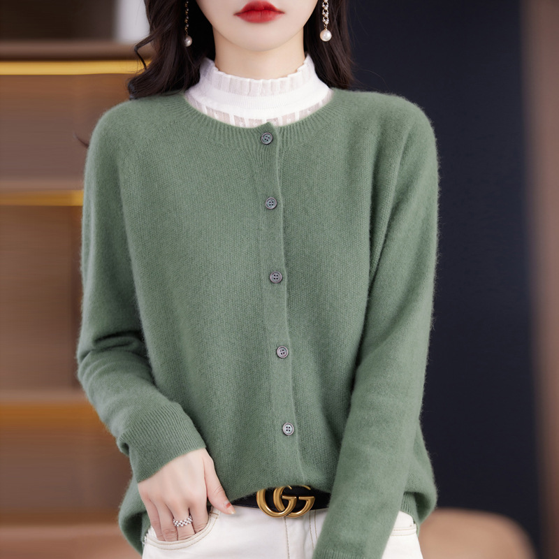 Первая линия одежды Энди бархат османтуса иголка с круглым вырезом кардиган женский вязаный свитер тонкий свободный модный свитер куртка оптом