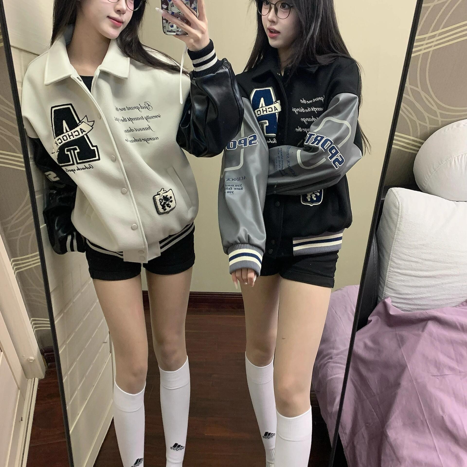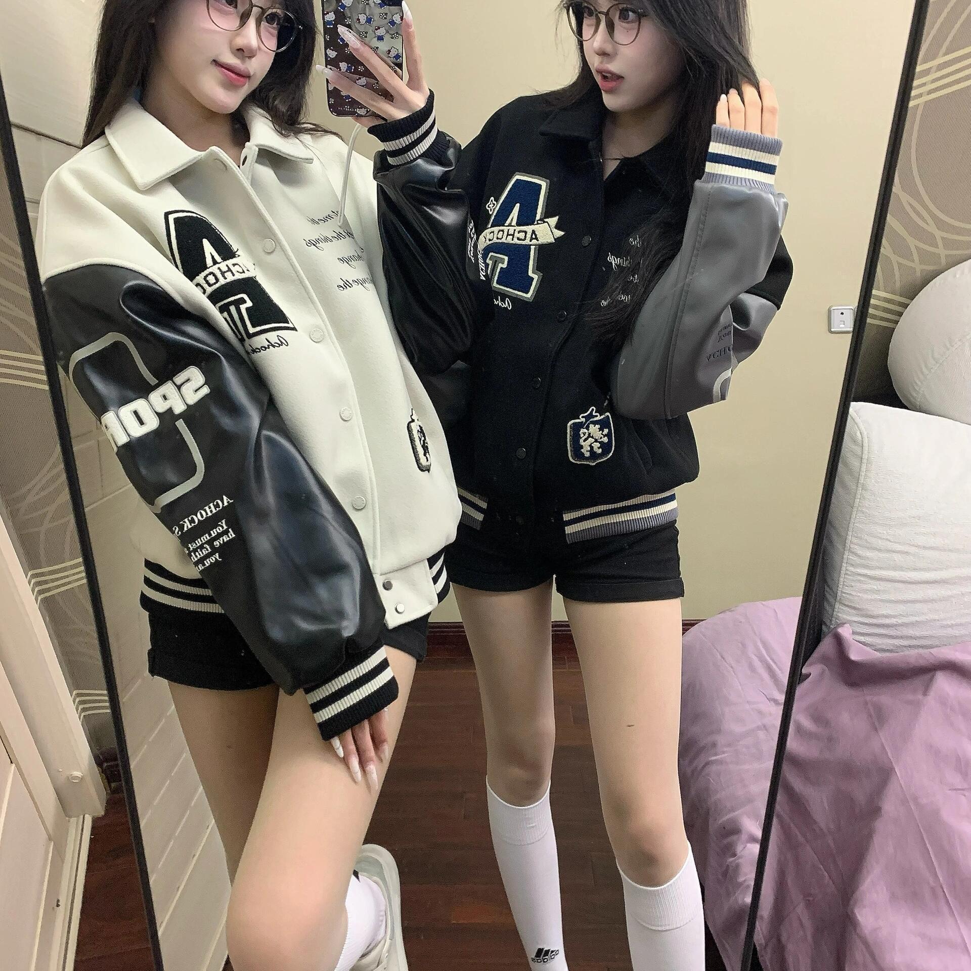 Главная страница > Женская бейсбольная куртка в американском стиле ретро, весенний новый стиль, куртка с вышитым воротником-стойкой для пар, свободный топ в стиле пэчворк.