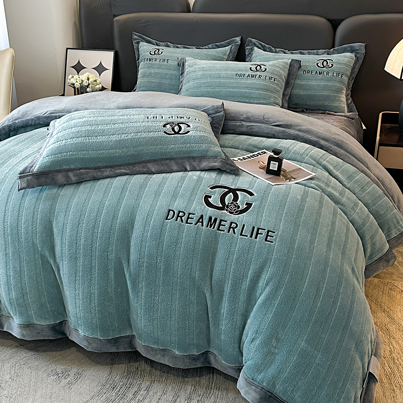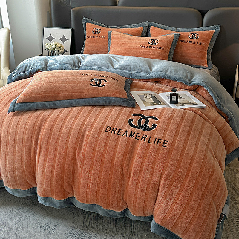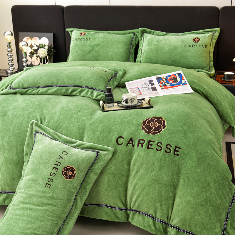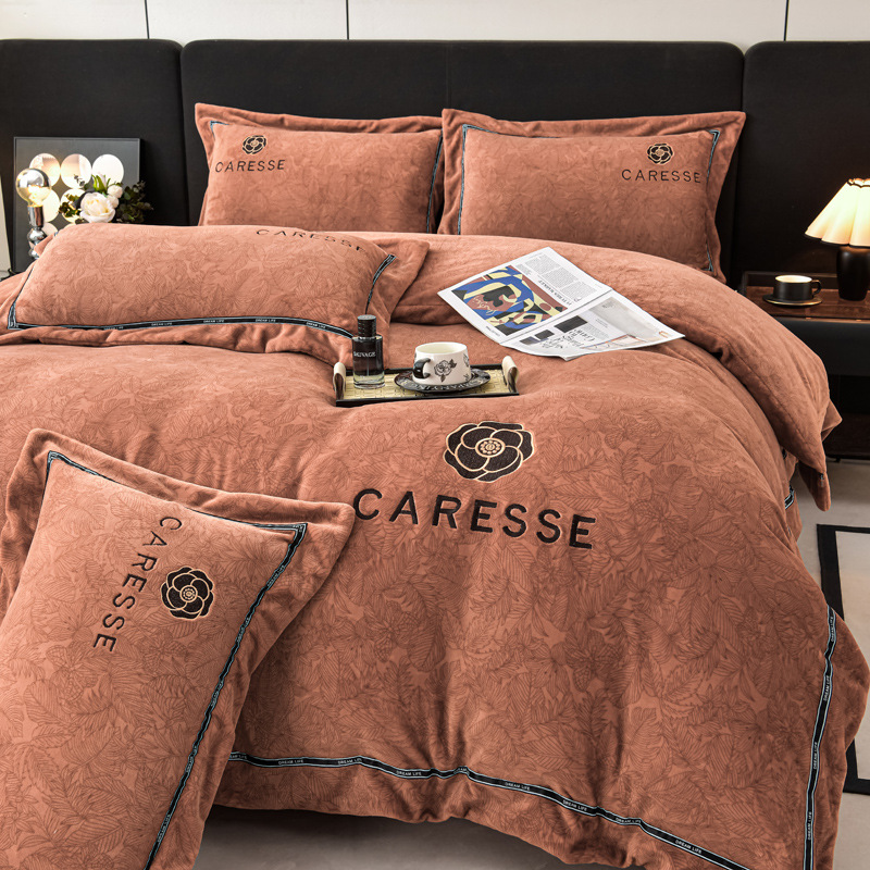 Высококачественный вышитый молочный бархат набор из четырех частей 2025 новый зимний утолщенный коралловый бархатный постельное белье