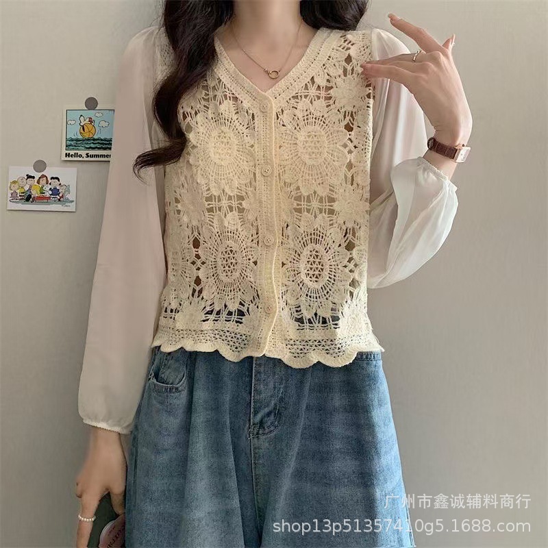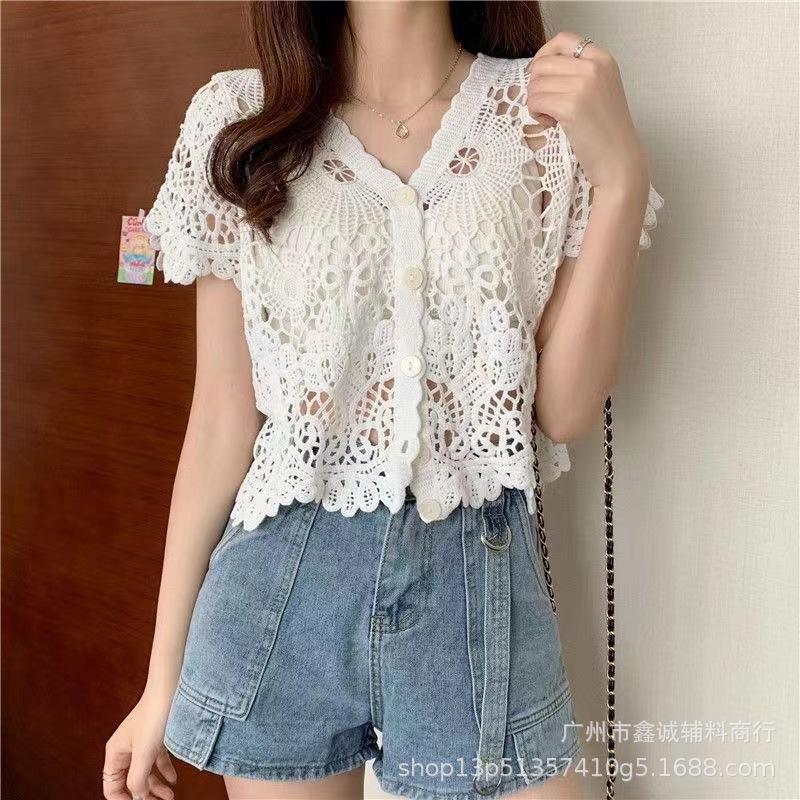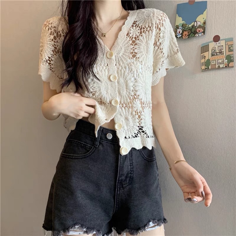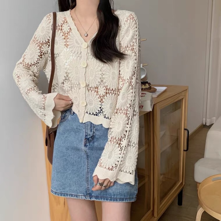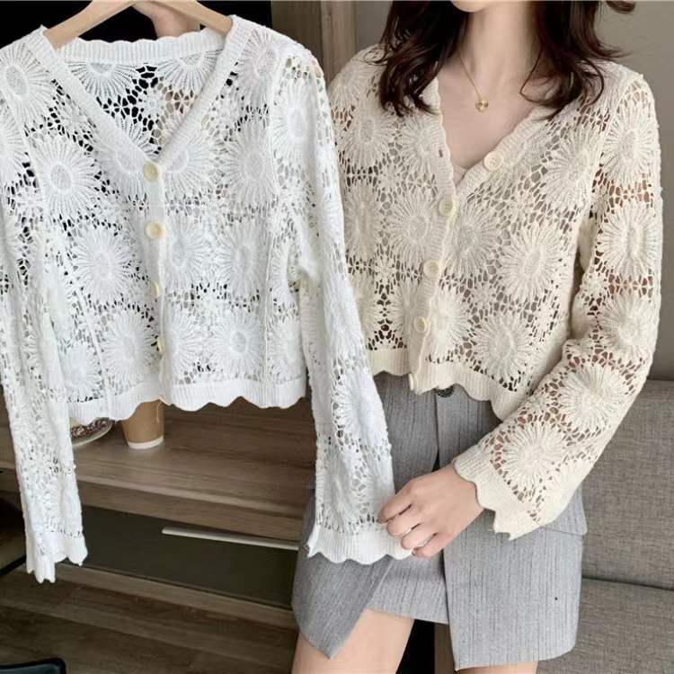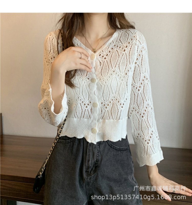 Главная страница > Короткий топ женский весной и летом ниша новая мода минус возрастной v-образный воротник с полым кондиционером трикотаж с длинными рукавами кардиган куртка