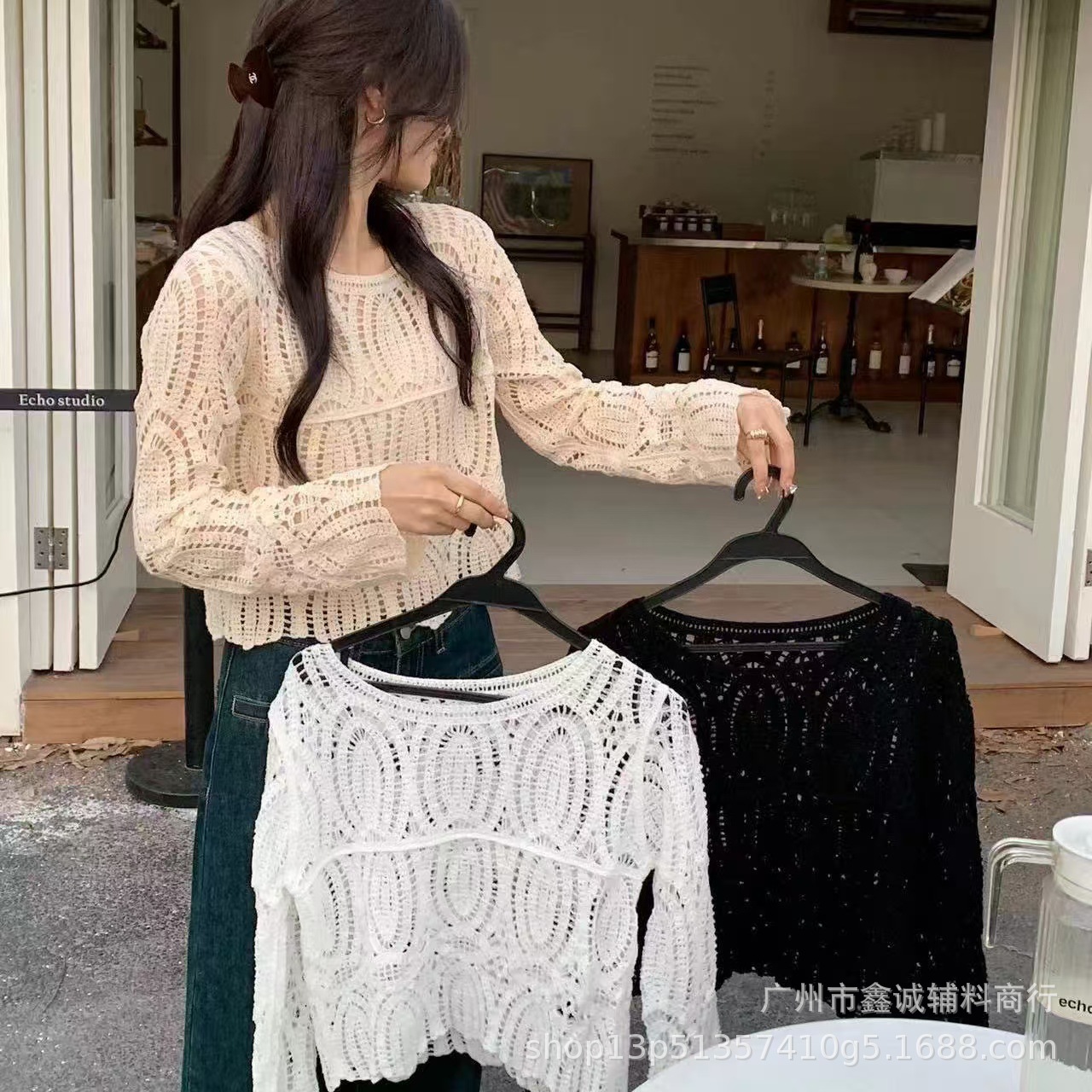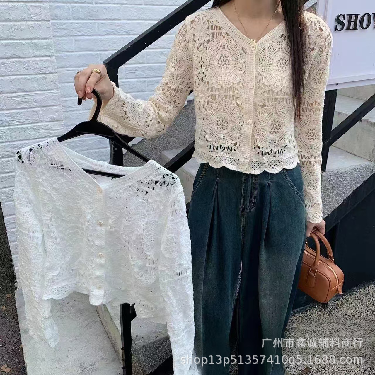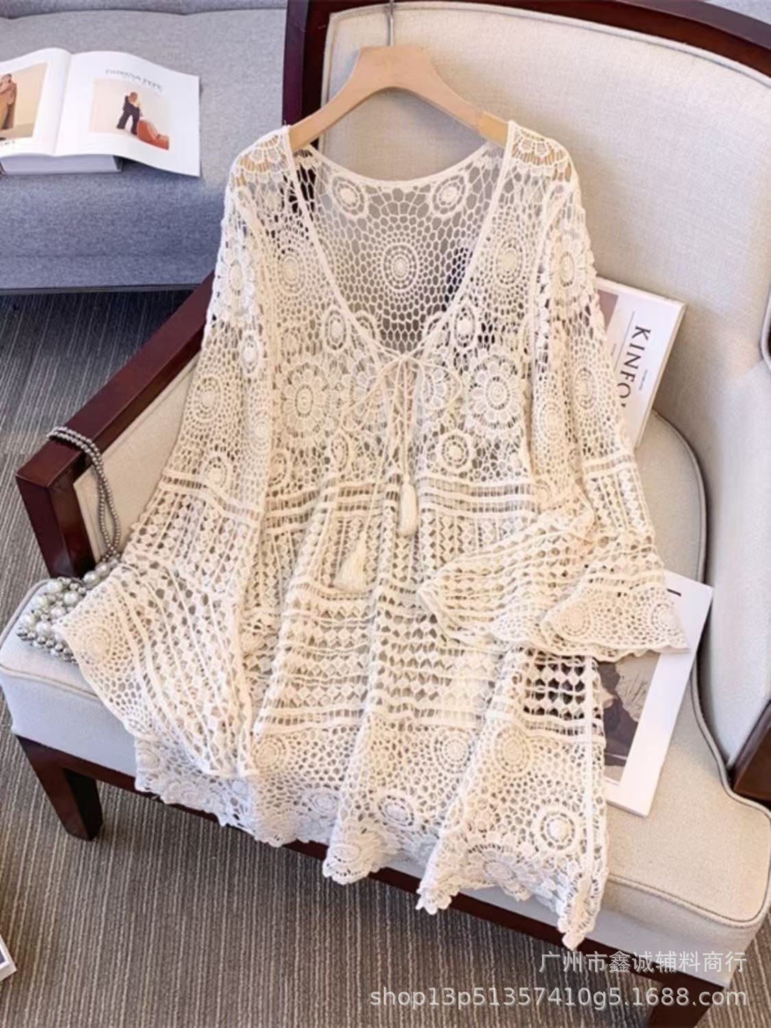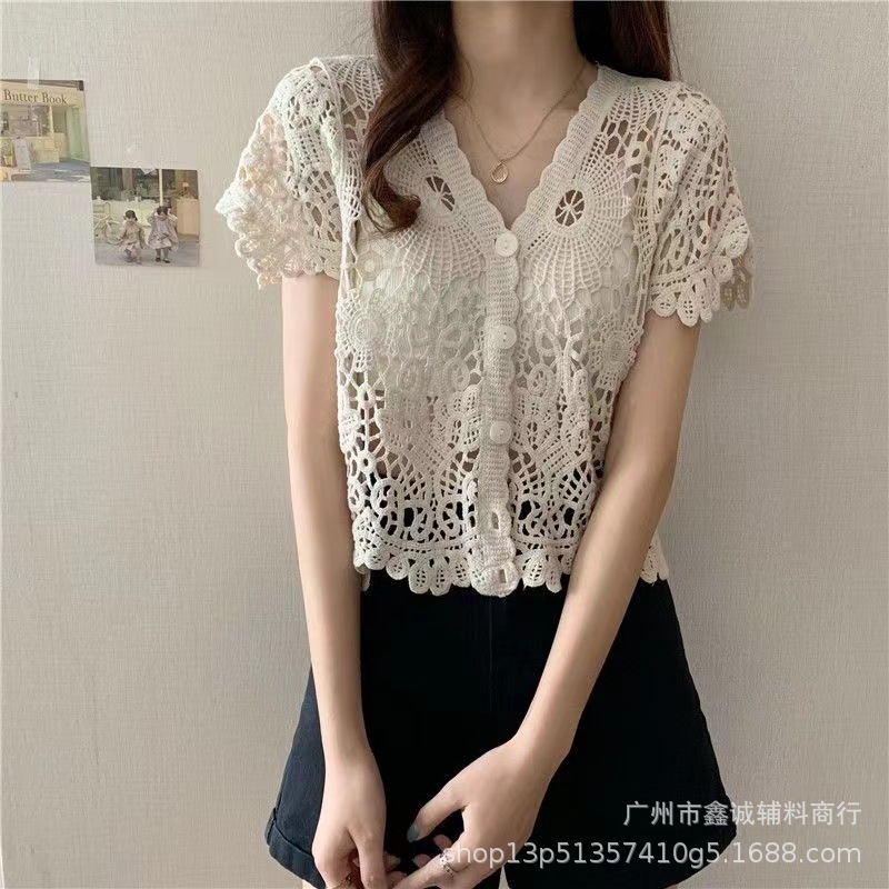 Главная страница > Короткий топ женский весной и летом ниша новая мода минус возрастной v-образный воротник с полым кондиционером трикотаж с длинными рукавами кардиган куртка