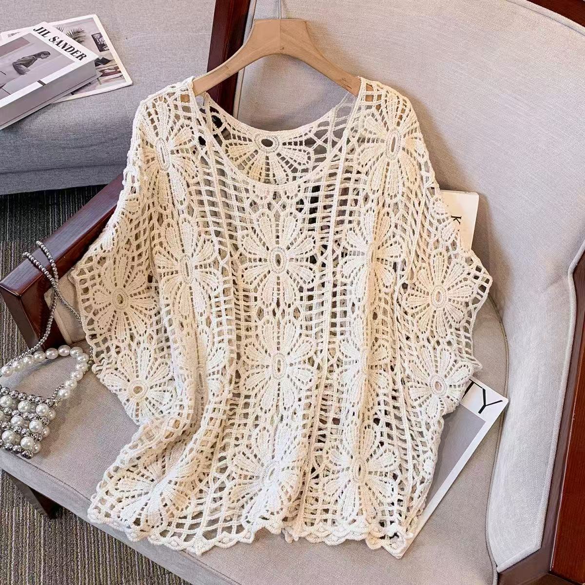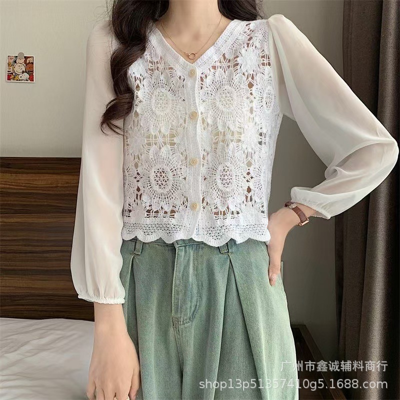 Короткий топ женский весной и летом ниша новая мода минус возрастной v-образный воротник с полым кондиционером трикотаж с длинными рукавами кардиган куртка