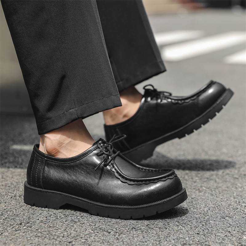 Главная страница > Тенденция бизнес-платья Мужская молодежная корейская версия британского стиля черные повседневные маленькие кожаные туфли дикая мода 43228-J