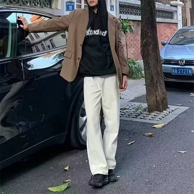 Главная страница > Белые расклешенные джинсы прямого кроя, легкие мужские брюки прямого кроя в американском стиле, облегающие брюки-сабо в уличном стиле