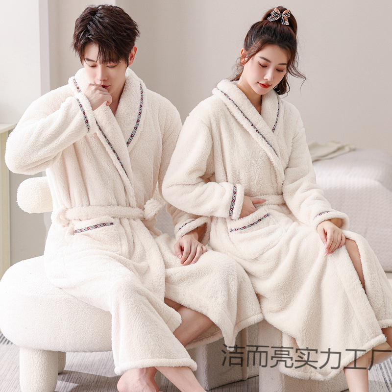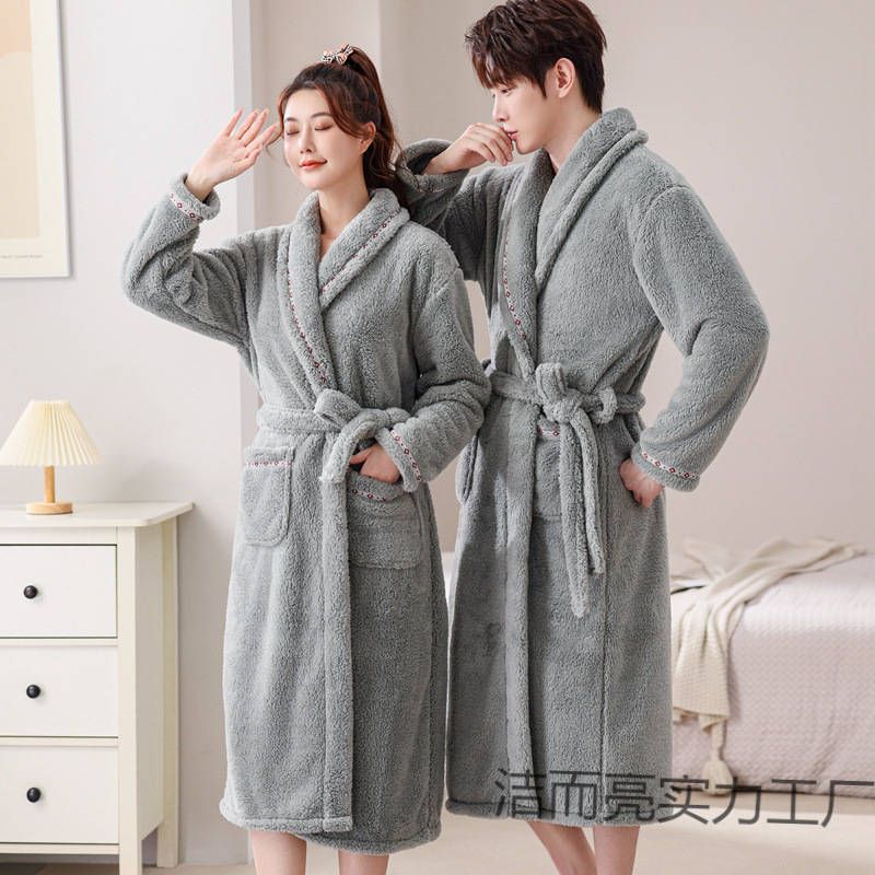Главная страница > Новый осенне-зимний коралловый бархатный халат для пар, женская утепленная ночная рубашка, мужской длинный теплый фланелевой халат большого размера, домашний