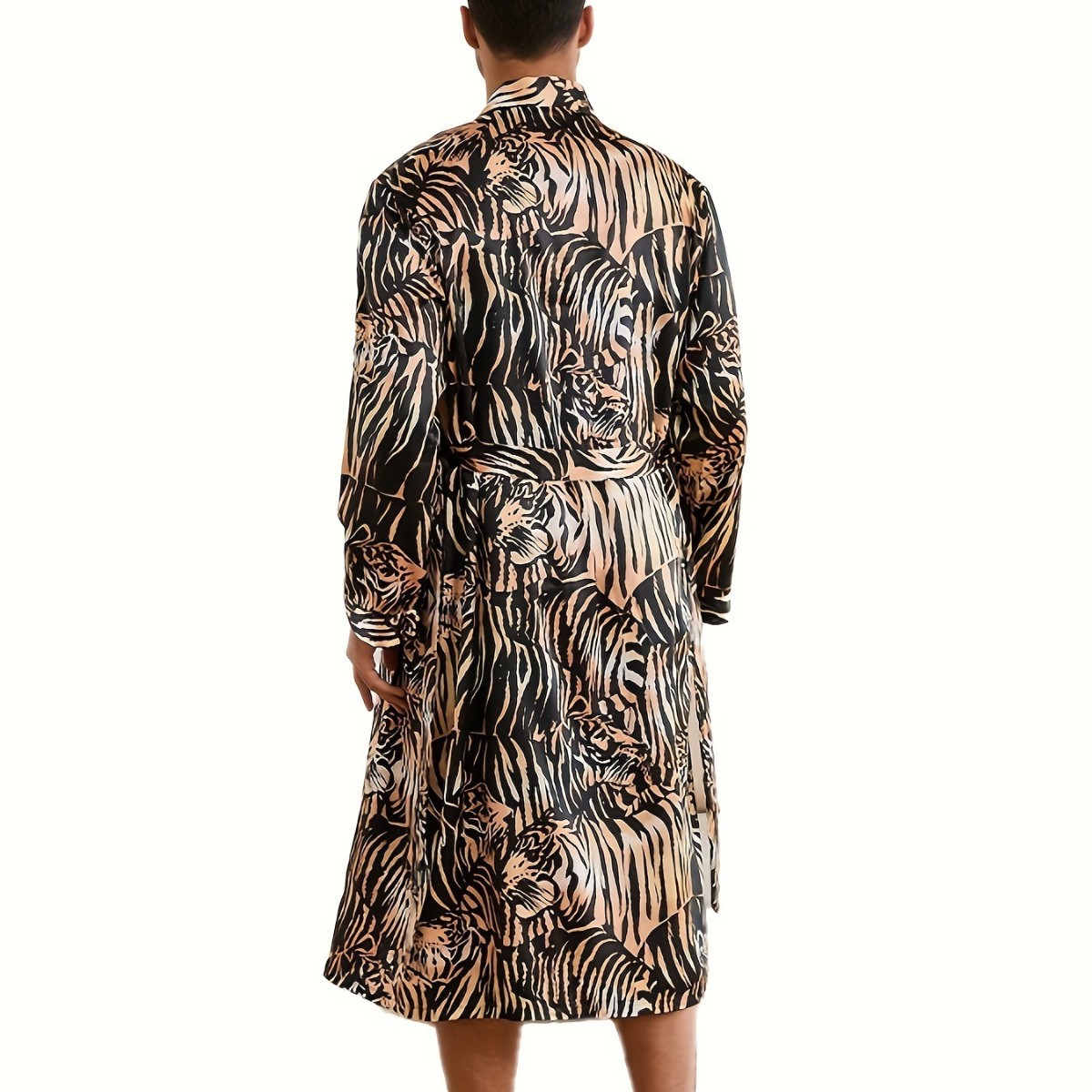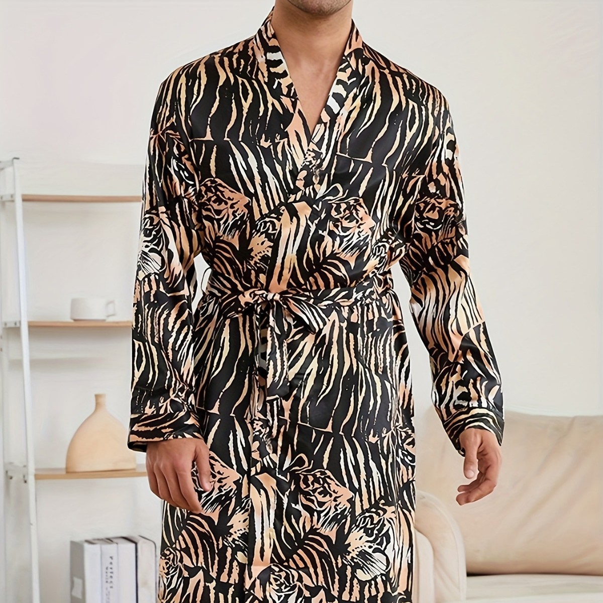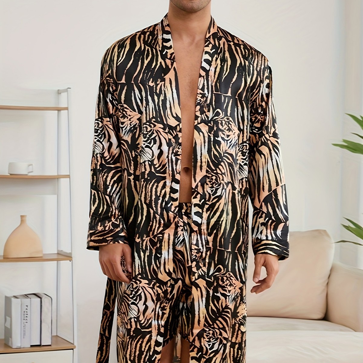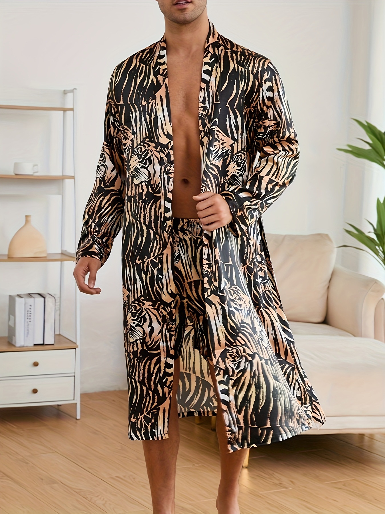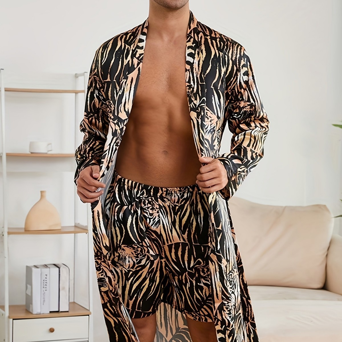 пижама Мужской пижамный комплект с тигровым принтом на шнуровке Пижама средней длины + шорты Домашняя одежда