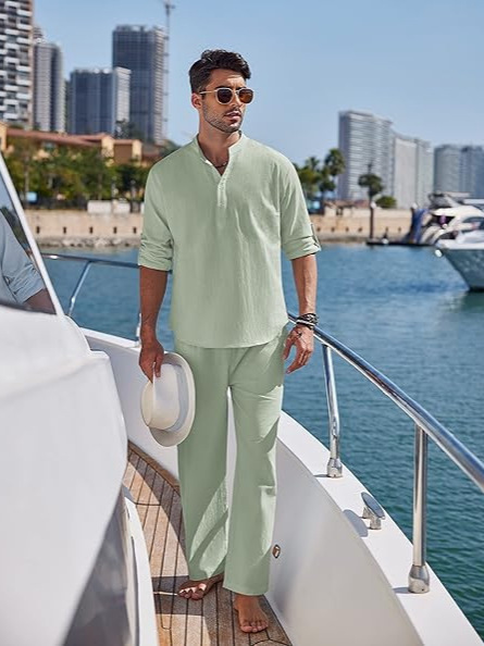 Главная страница > 2024 Осень и Зима Внешняя торговля Amazon Горячая распродажа Мужской сплошной цвет повседневного хлопка и льна с длинными рукавами Henry Pit Kit