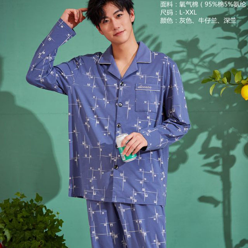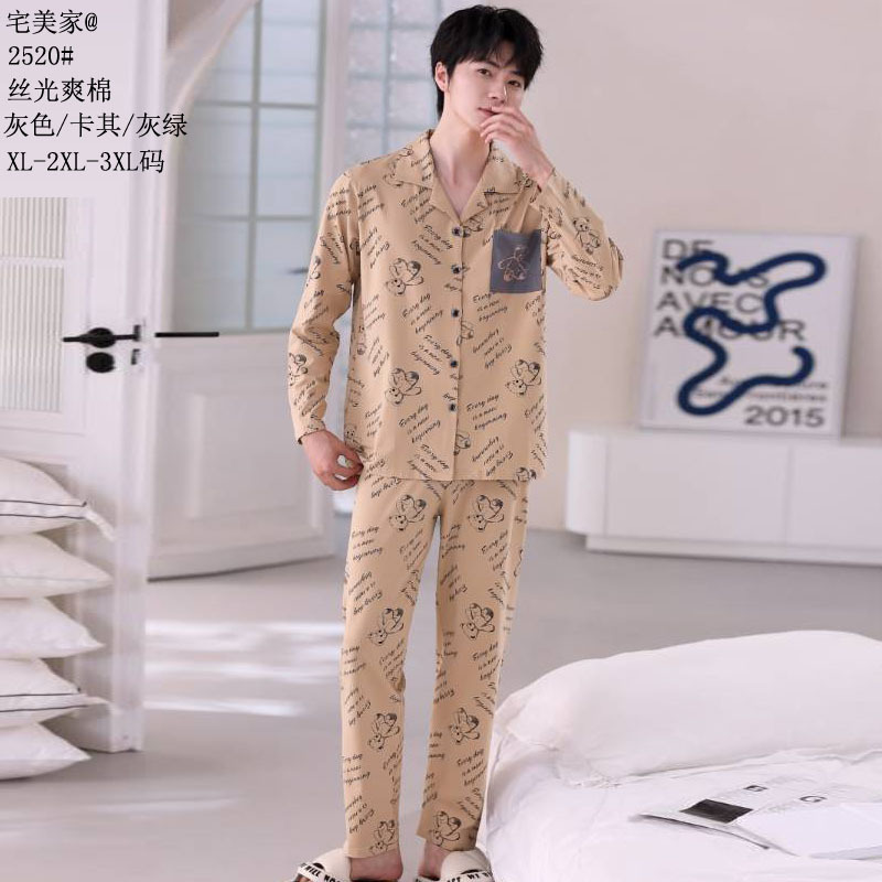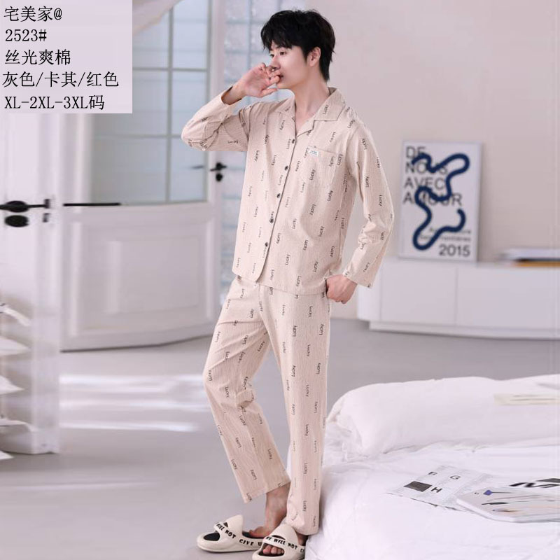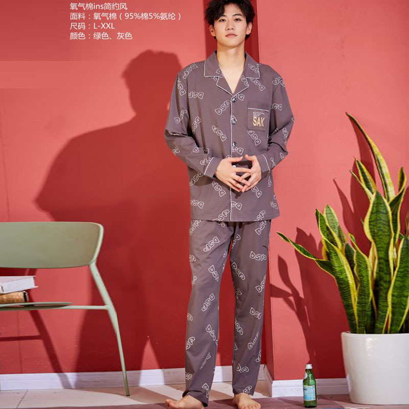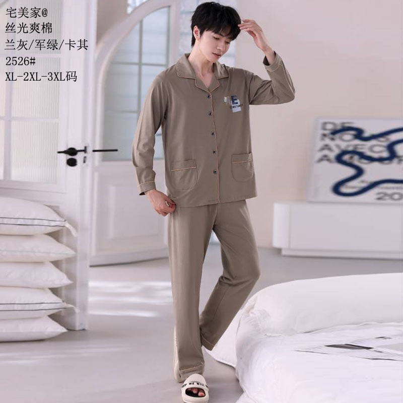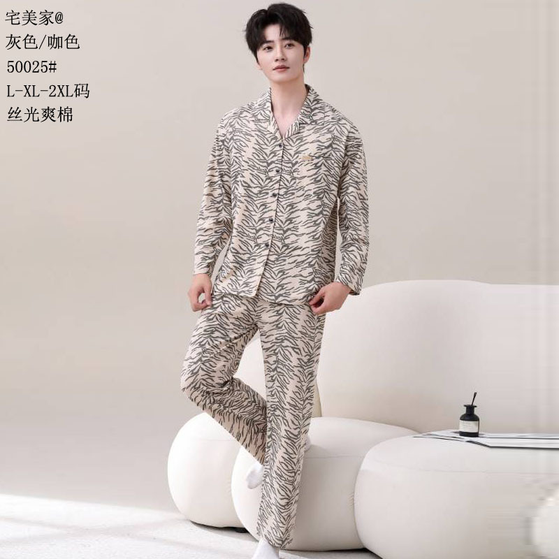 Главная страница > Silk Shuang Cotton Home Home Beauty 2025 новый модный бренд домашняя одежда с длинными рукавами кардиган из хлопка мужской костюм пижамы