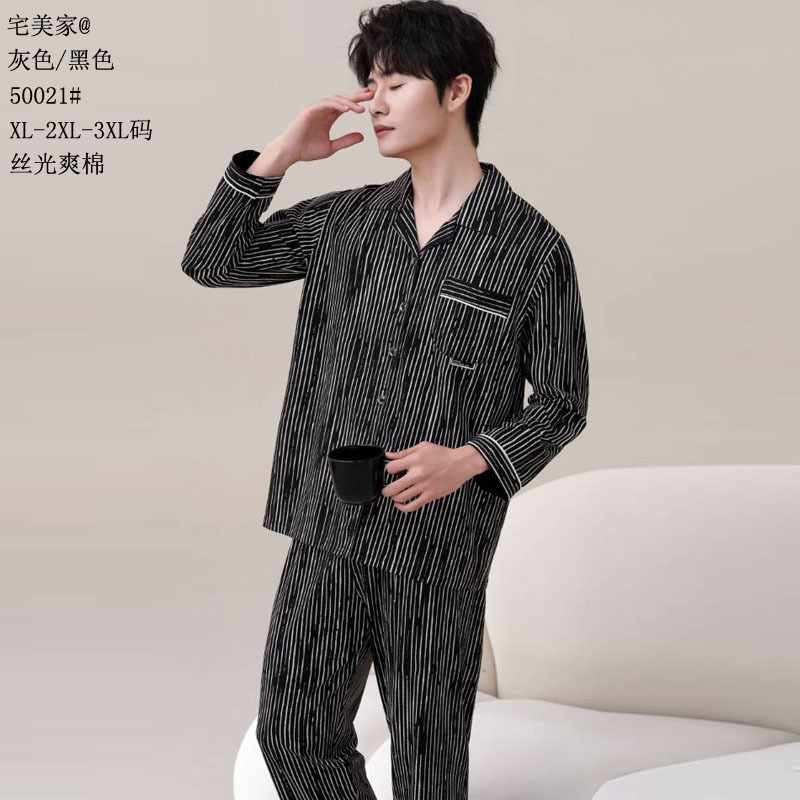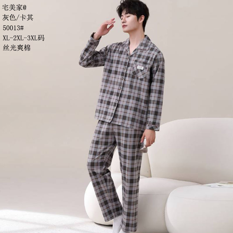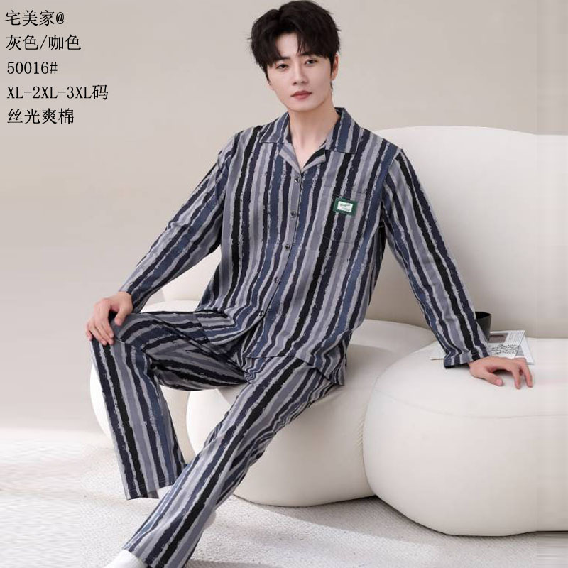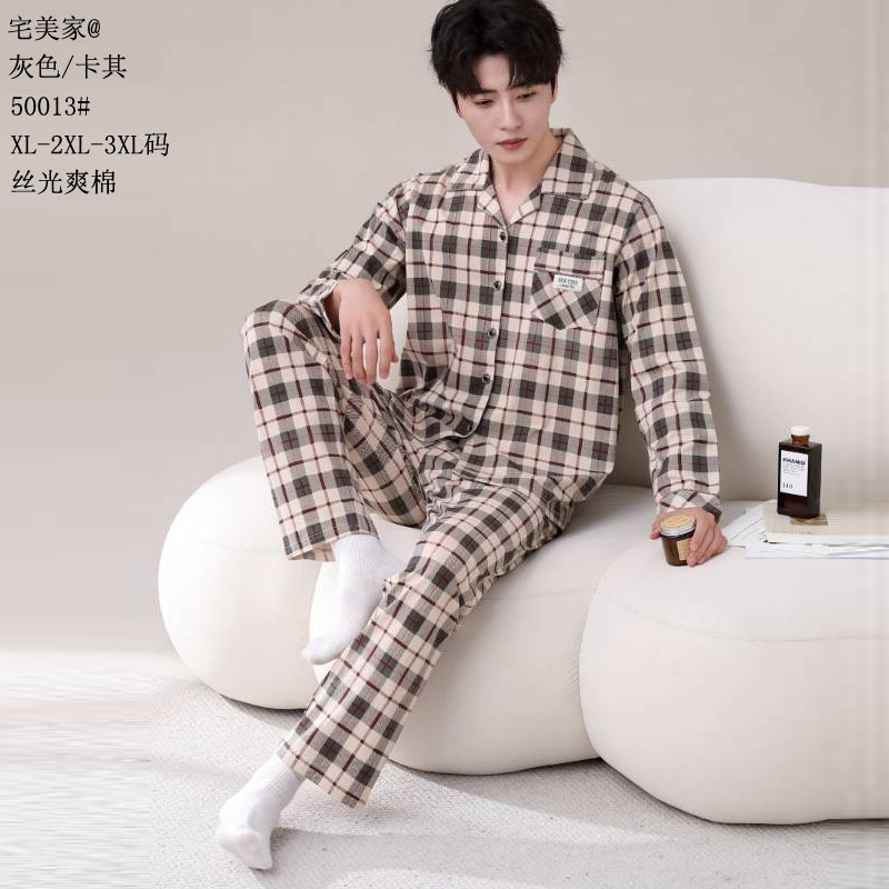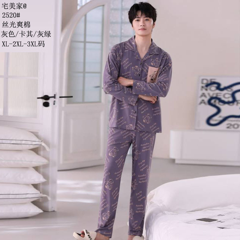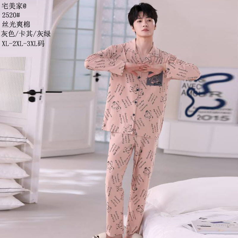Главная страница > Silk Shuang Cotton Home Home Beauty 2025 новый модный бренд домашняя одежда с длинными рукавами кардиган из хлопка мужской костюм пижамы