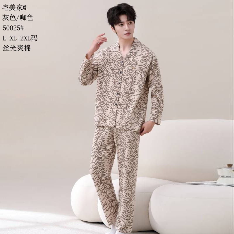 Silk Shuang Cotton Home Home Beauty 2025 новый модный бренд домашняя одежда с длинными рукавами кардиган из хлопка мужской костюм пижамы
