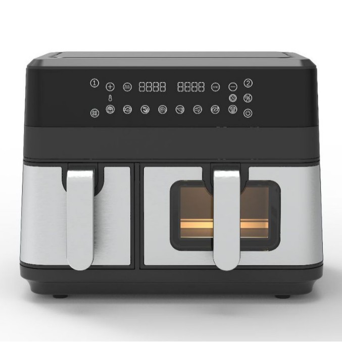 Главная страница > Коммерческая воздушная фритюрница с двумя горшками 9-10L Регулируемая температура может быть синхронизирована с большой емкостью электрический фритюрный экран для нагрева вверх и вниз