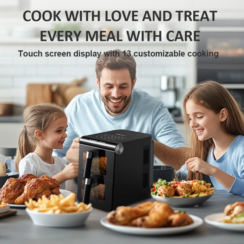 Многофункциональная аэрофритюрница с европейским стандартом, двойной чашей 13 л, сенсорным управлением, большой вместимостью и интеллектуальным управлением, 6,5+6,5 л