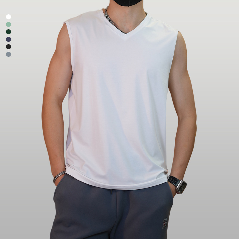 Главная страница > Новая летняя мужская футболка из модала из ледяного шелка, крутой жилет без рукавов, мужская однотонная свободная толстовка с внутренним слоем