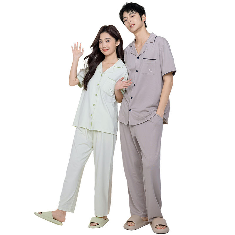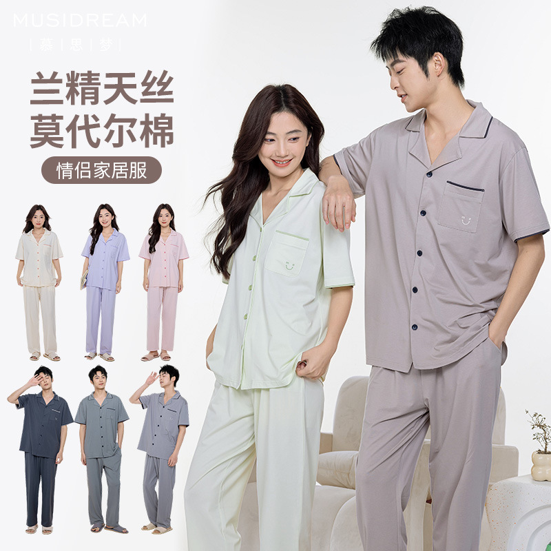 Главная страница > Tian Silan Elemants Mo Delmotton Пижама с короткими рукавами брюки брюки лацканный набор летом минималистский мужской и женский пижамы тонкая