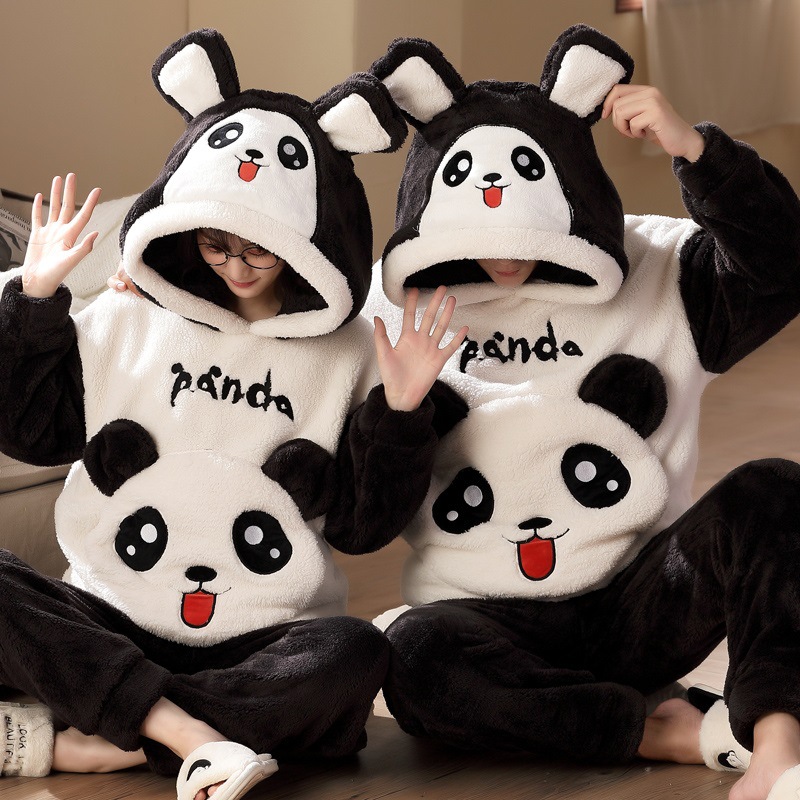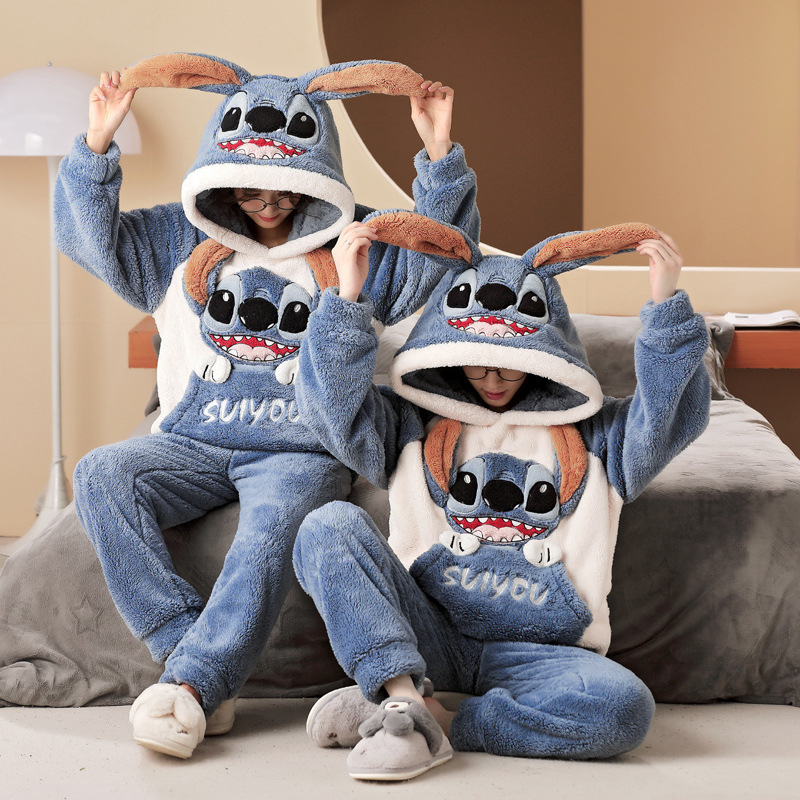 Главная страница > Пара пижамы мужские и женские утолщенные коралловые флисовые стежки милые зимние Мультяшные с капюшоном теплая фланелевая домашняя одежда
