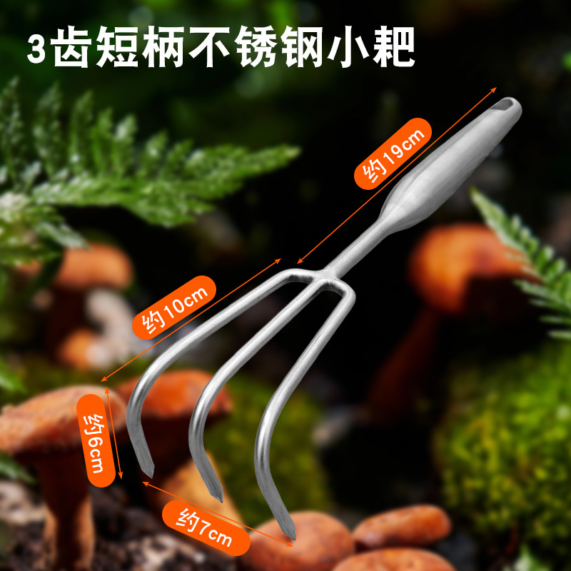 Маленькие грабли из нержавеющей стали, 3 коротких зубца * 29,5 см.
