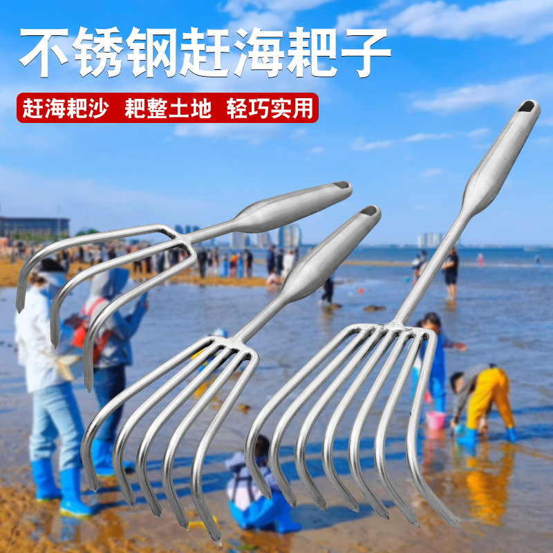 Новые утолщенные грабли из нержавеющей стали, встроенные сварные бытовые садовые грабли, инструмент для рыхления почвы во дворе, садовый инструмент для раскопок на пляже.
