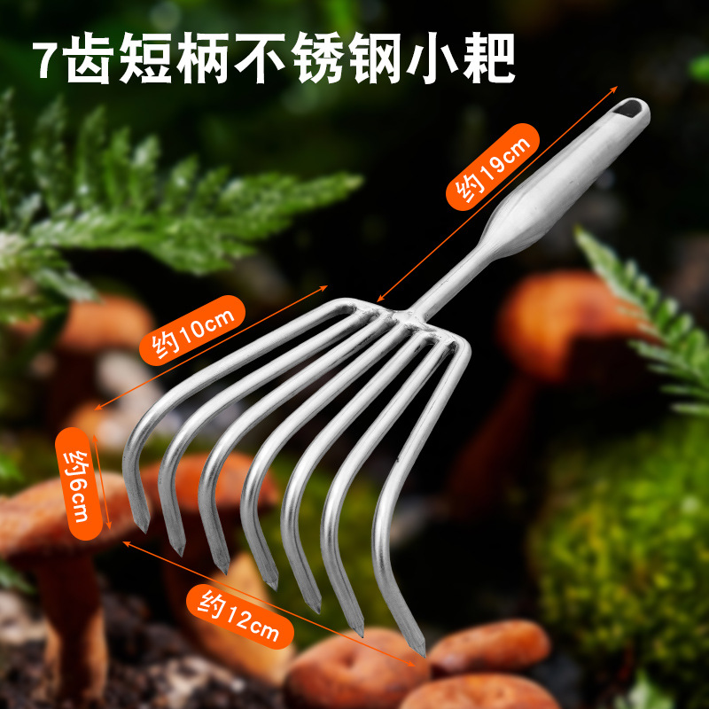 Маленькие грабли из нержавеющей стали с 7 зубцами длиной * 36,5 см.