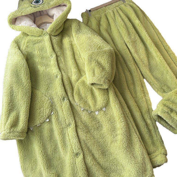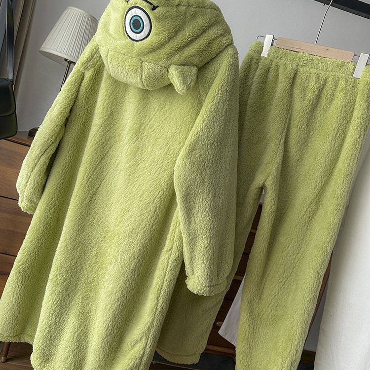 Главная страница > Пижама из кораллового флиса с эффектом «больших глаз», осенне-зимняя ночная рубашка, утолщенная длинная домашняя теплая плюшевая ночная сорочка, мультяшный милый дизайн