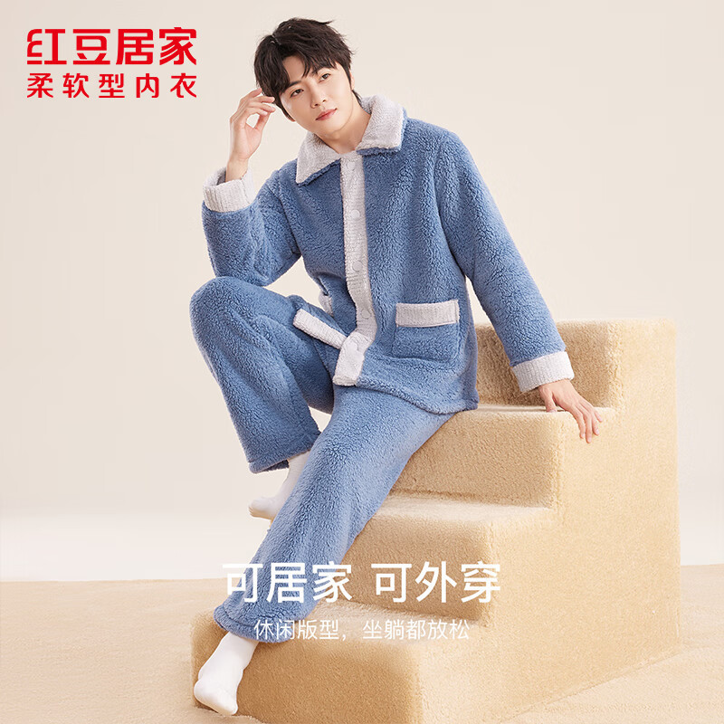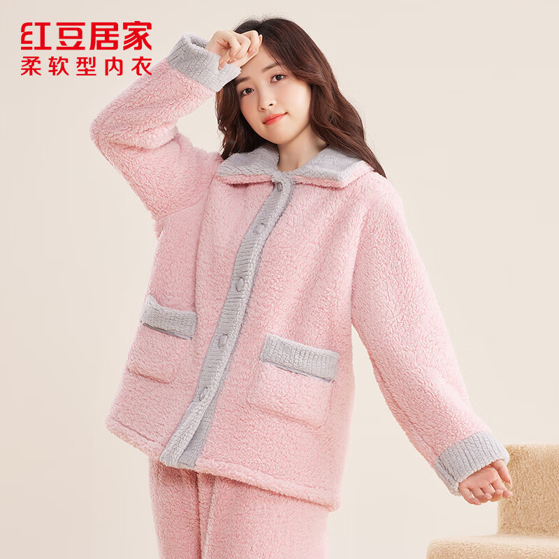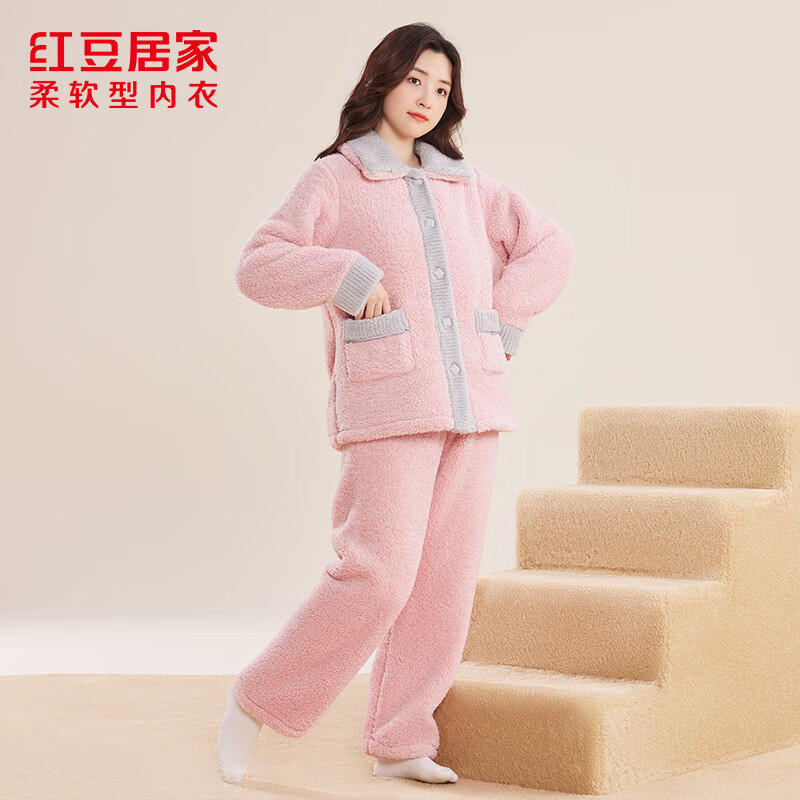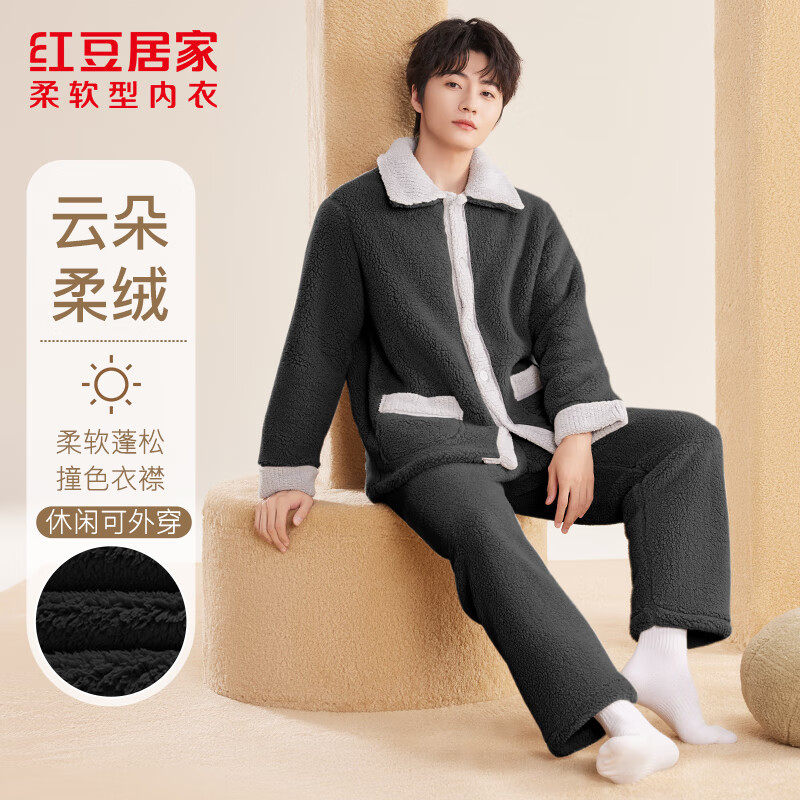 Главная страница > Домашние пижамы для пар Red Bean, осенне-зимний бархатный утолщенный теплый кардиган контрастного цвета с лацканами, молочный бархатный пижамный комплект