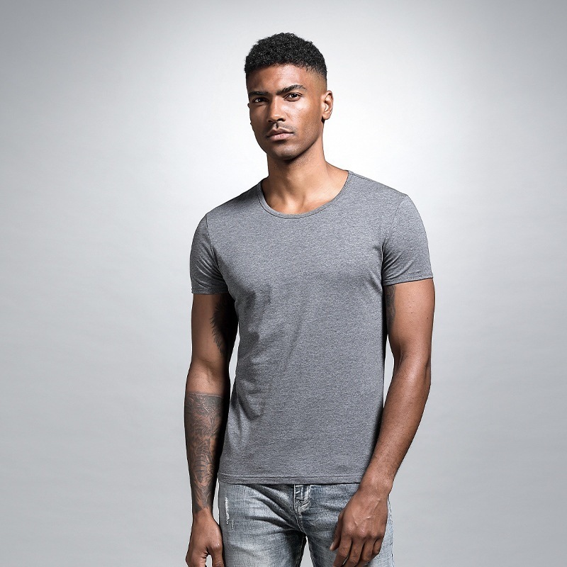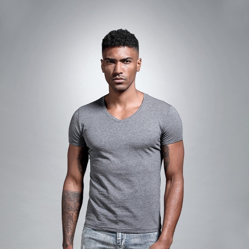 Оптовая продажа летом сплошной цвет V-образный вырез белая футболка с обтягающей нижней рубашкой мужской короткий рукав куриное сердце воротник белый T с тонким внутренним дном